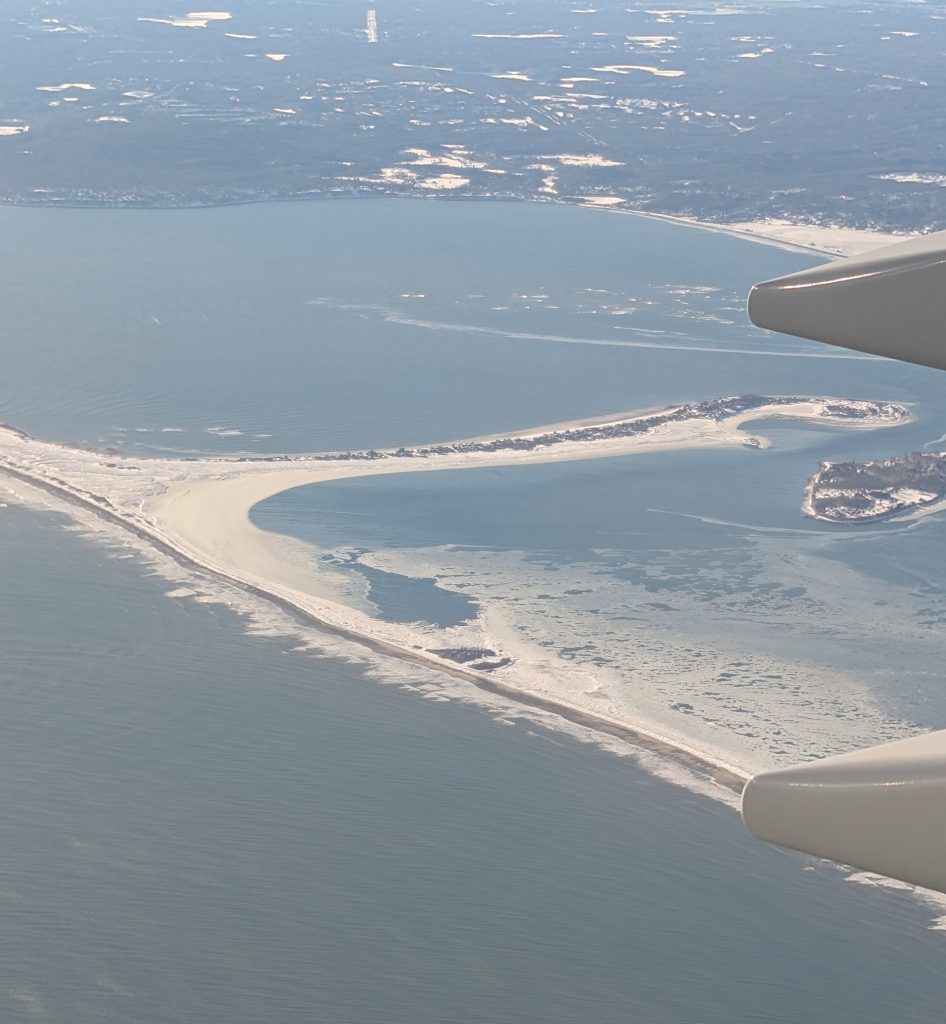 Did you think this was sandy beaches? Think again! It’s approaching Boston from the air, and it’s SNOW!