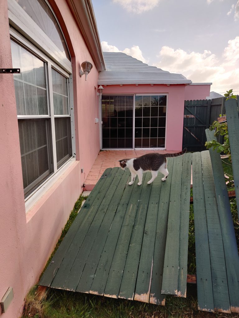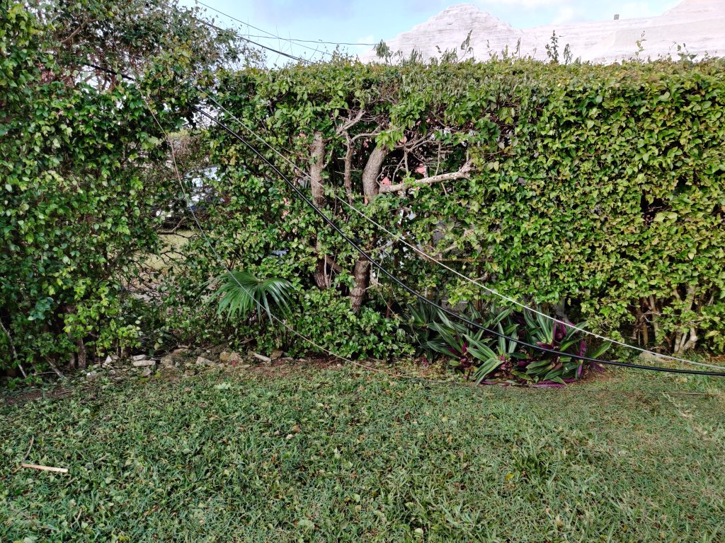 And after the storm, checking out the aftermath. Not too bad. After taking the bar off the shed, it survived quite well. The fence definitely did not, and Lance and Princess are happily exploring the outcome! You can also see the fallen power lines. Always happens, seemingly!