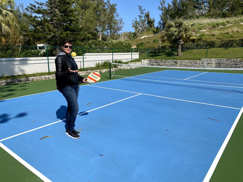We learned to play Pickle Ball. I was still cold, but eventually after some time the jacket then the sweater finally came off. š