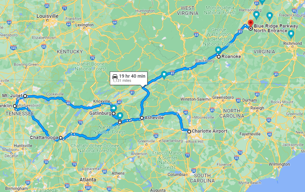 Finally we hit the Blue Ridge Parkway, and did some hiking trails as we made our way along the twisty scenic roadway.