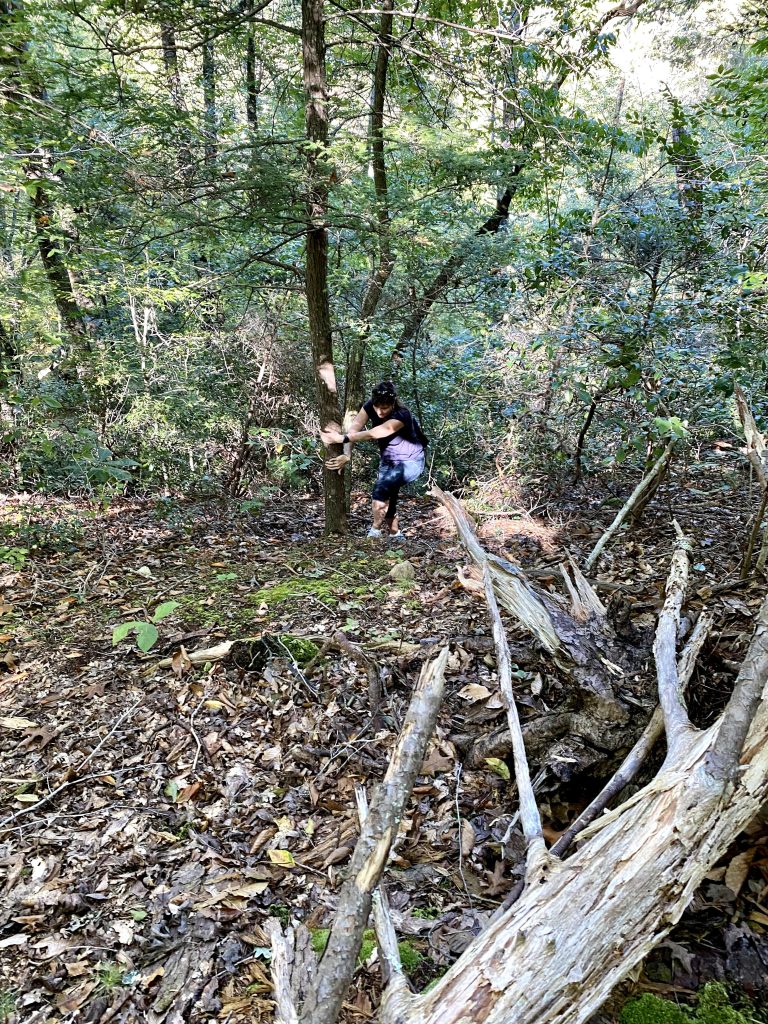 We took a wrong turn off a loop trail and did some very steep climbing on some pretty loose terrain to try to reconnect with the path.