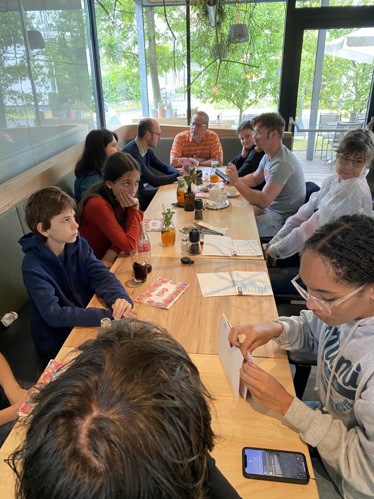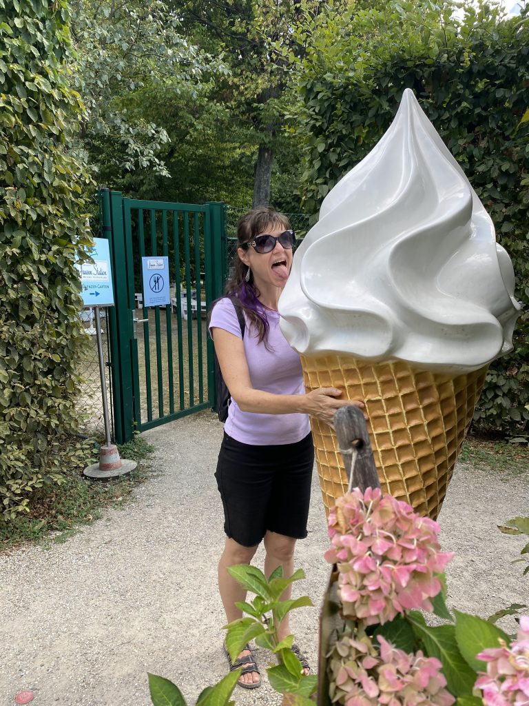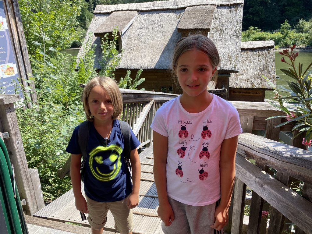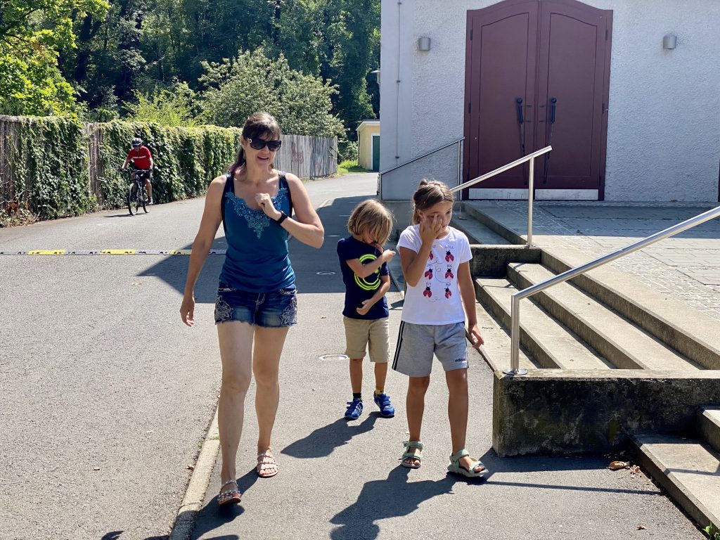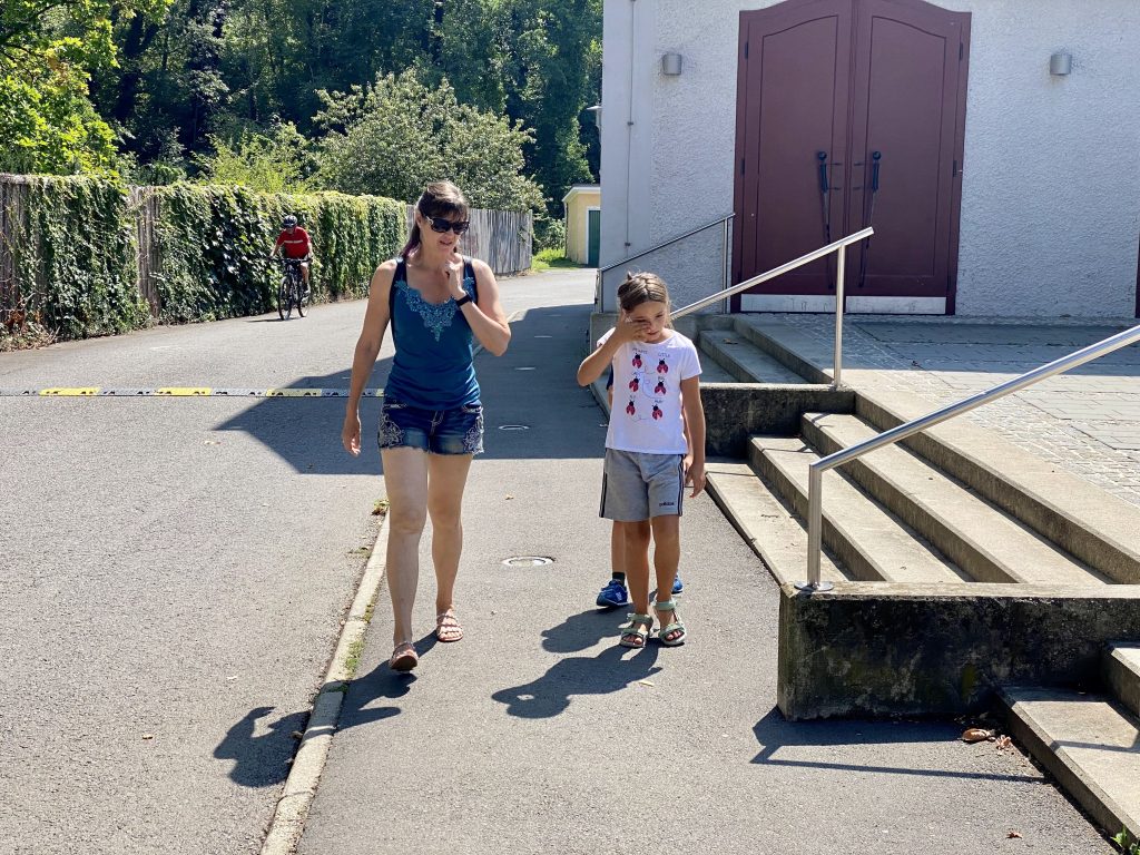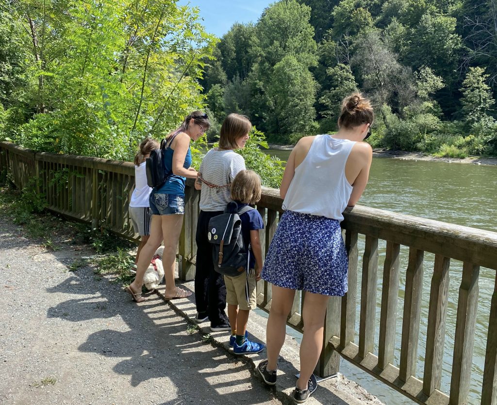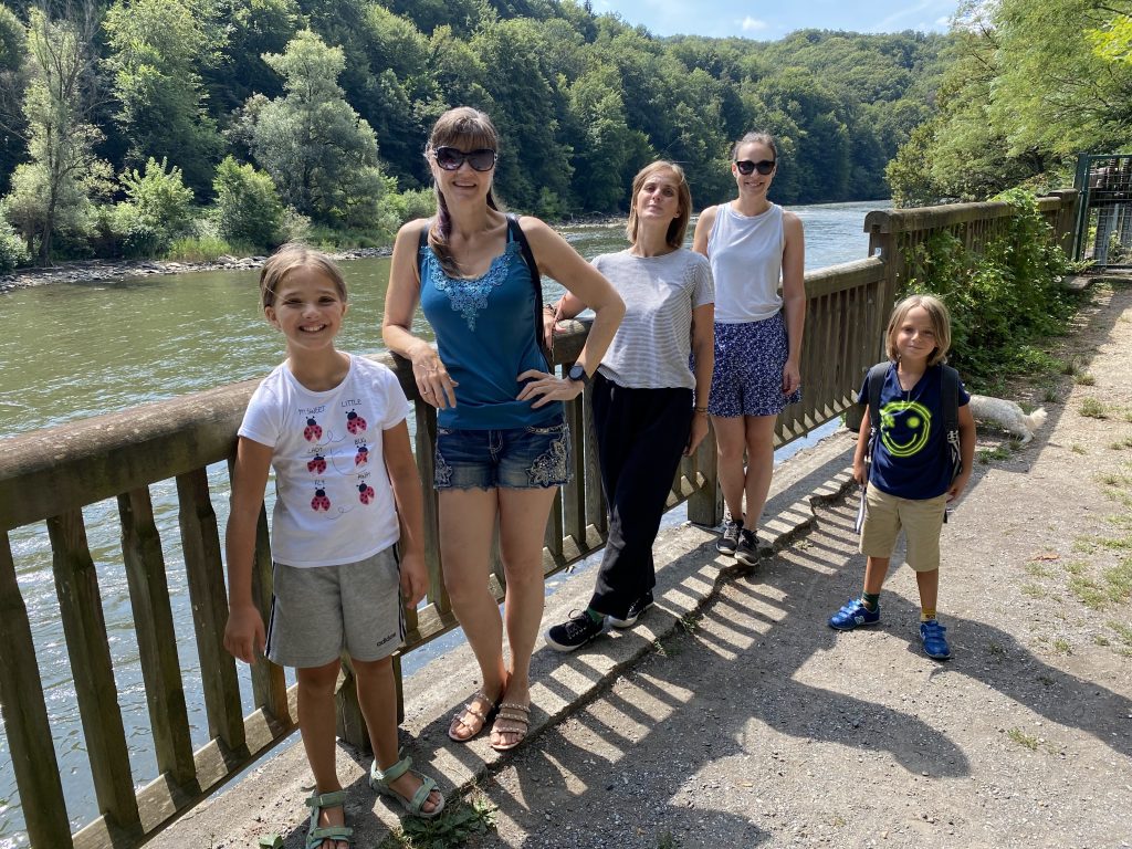 Helen and her friend joined us at the farm. Then the kids joined because their grandma had Covid. We all went to Murek, walked around a park and had lunch at a restaurant right on the river. I had some nice fried fish with potato salad. They we got some ice creams from the Bio food store. Mine was caramel of course.