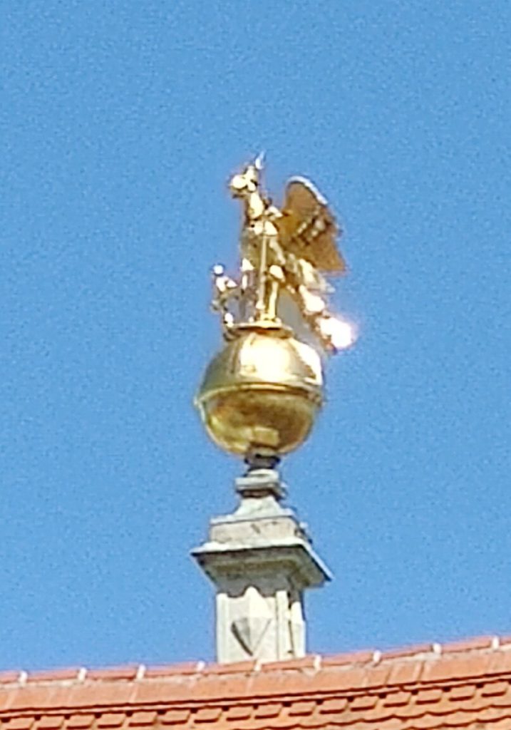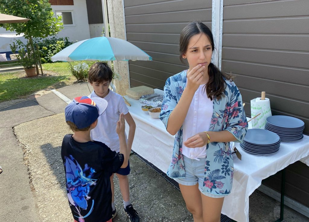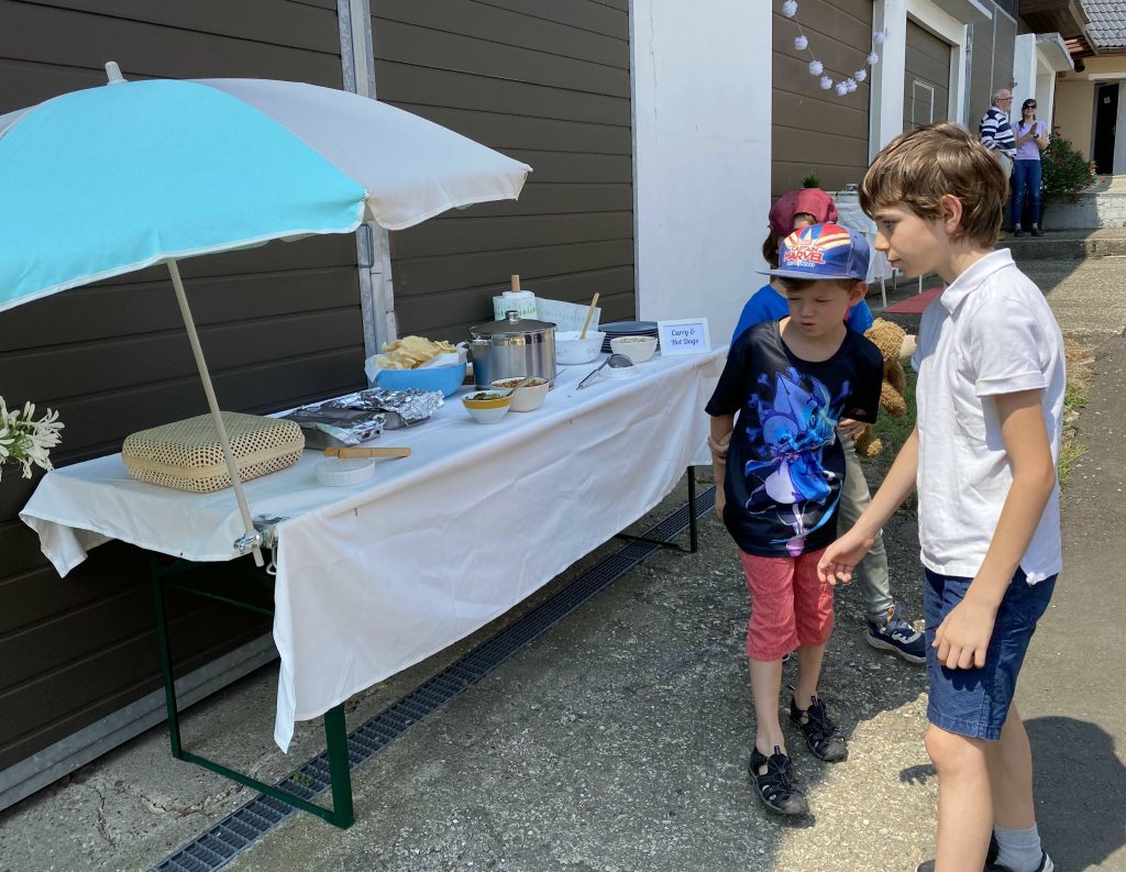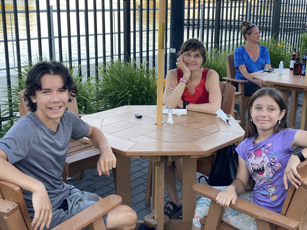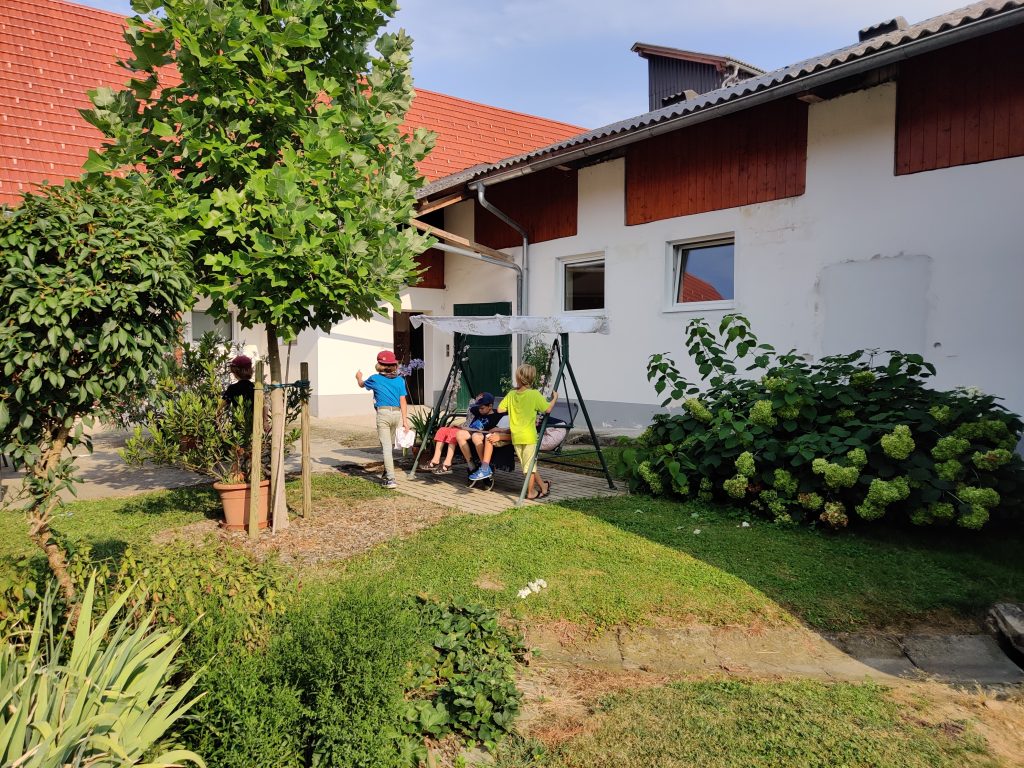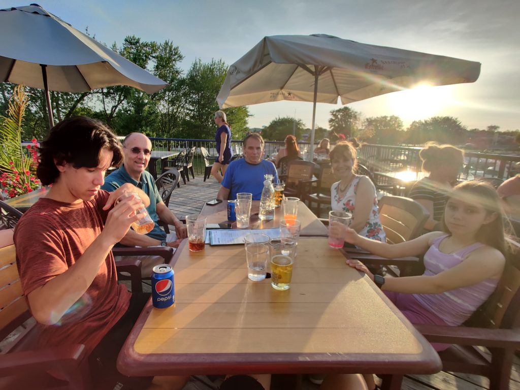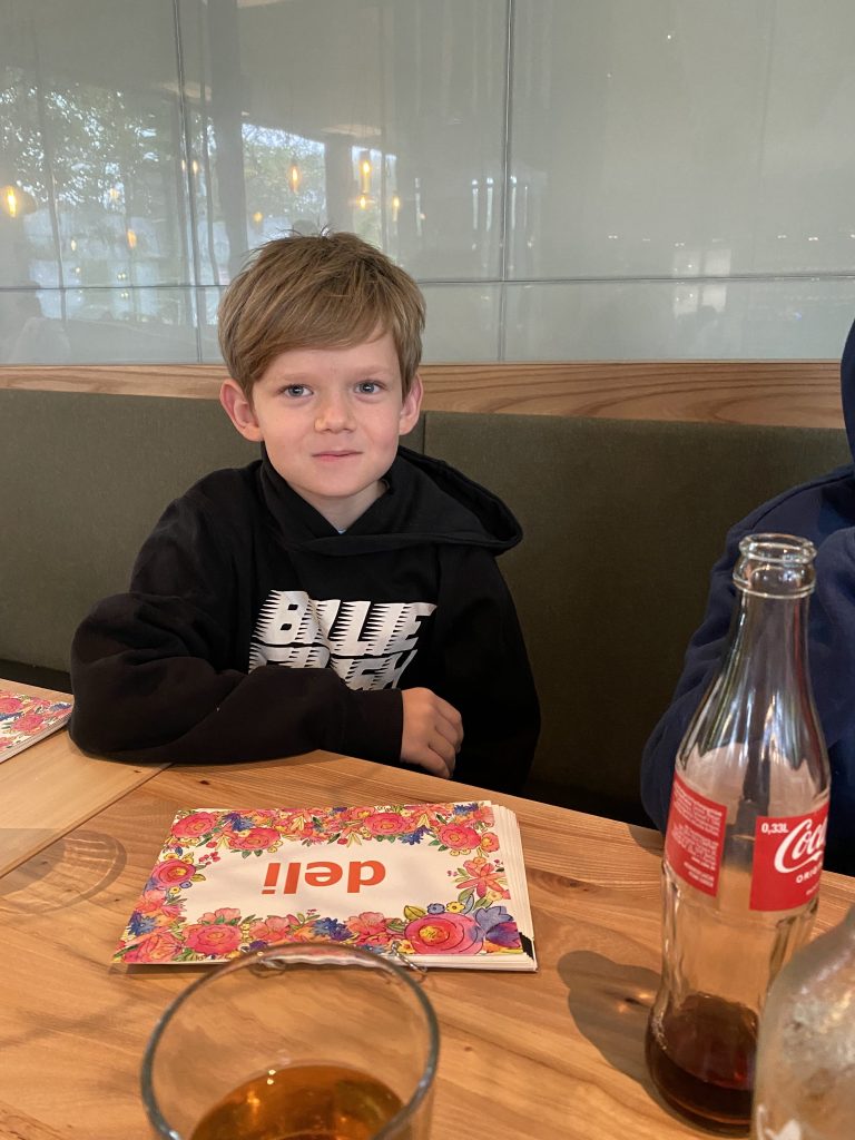 Helen and her friend joined us at the farm. Then the kids joined because their grandma had Covid. We all went to Murek, walked around a park and had lunch at a restaurant right on the river. I had some nice fried fish with potato salad. They we got some ice creams from the Bio food store. Mine was caramel of course.
