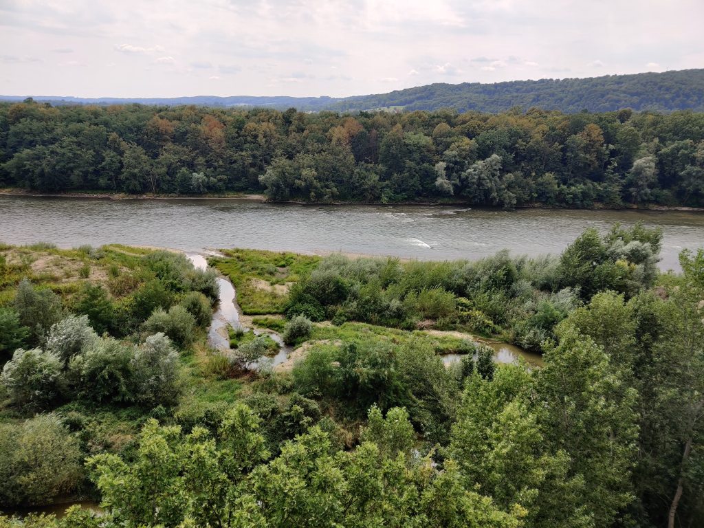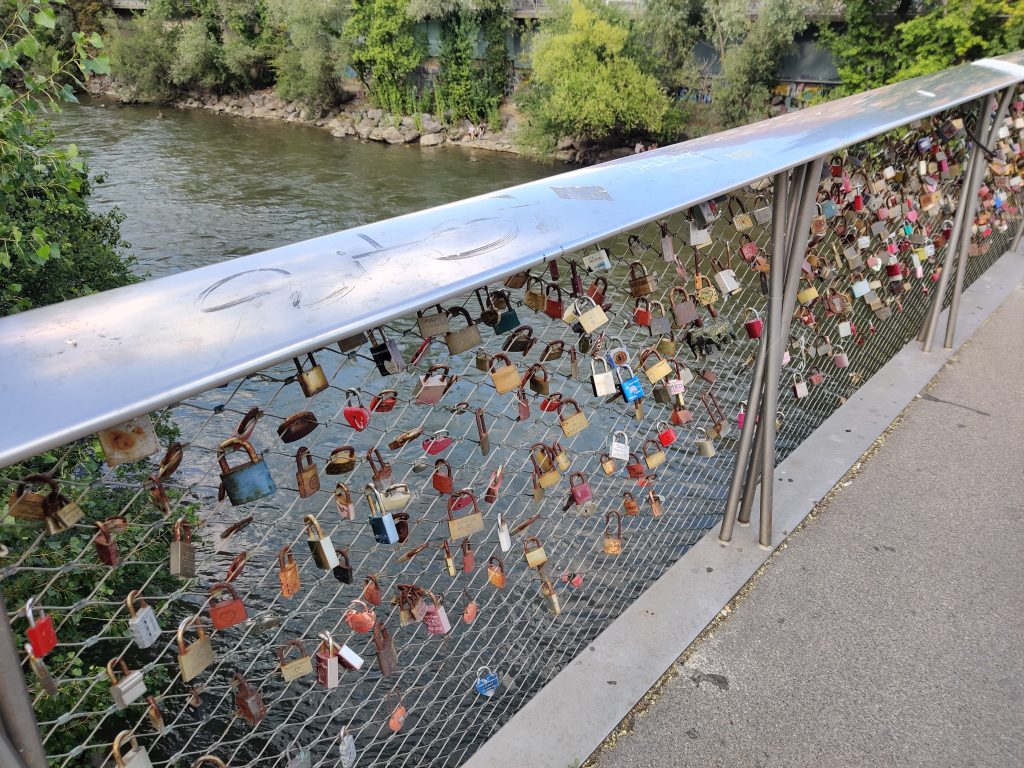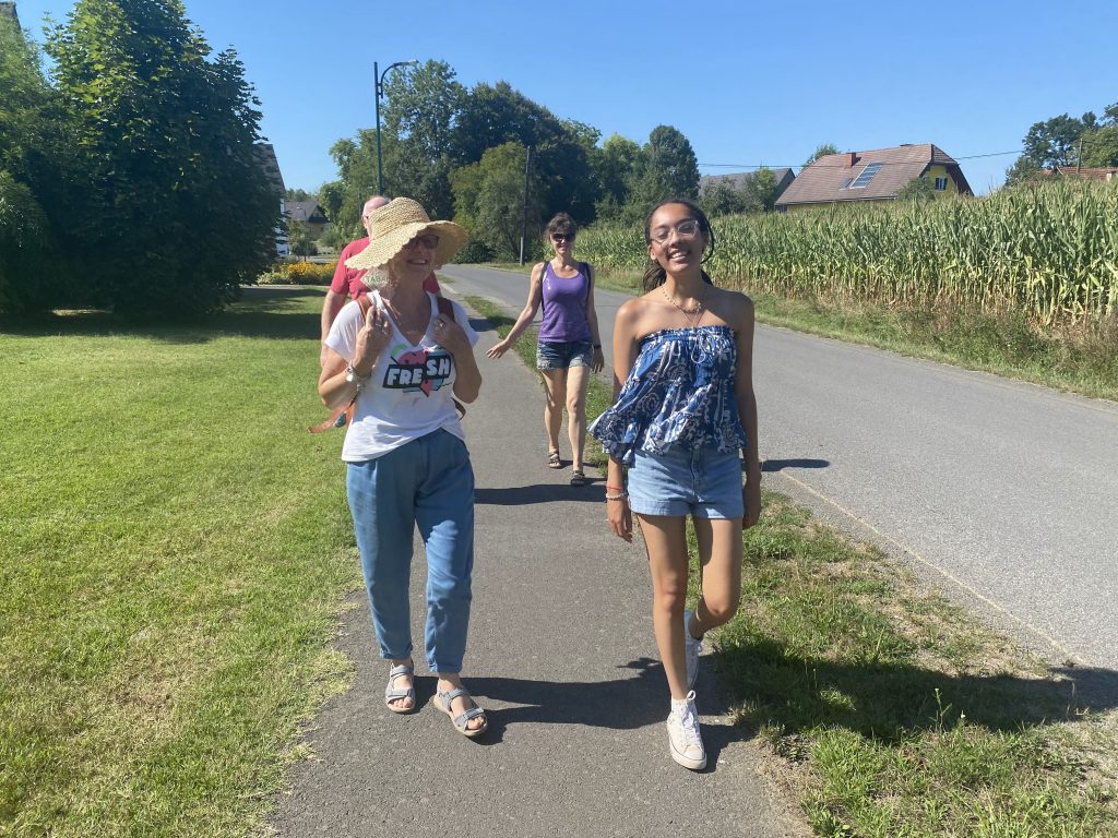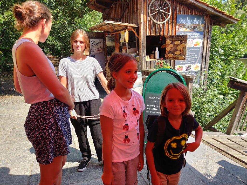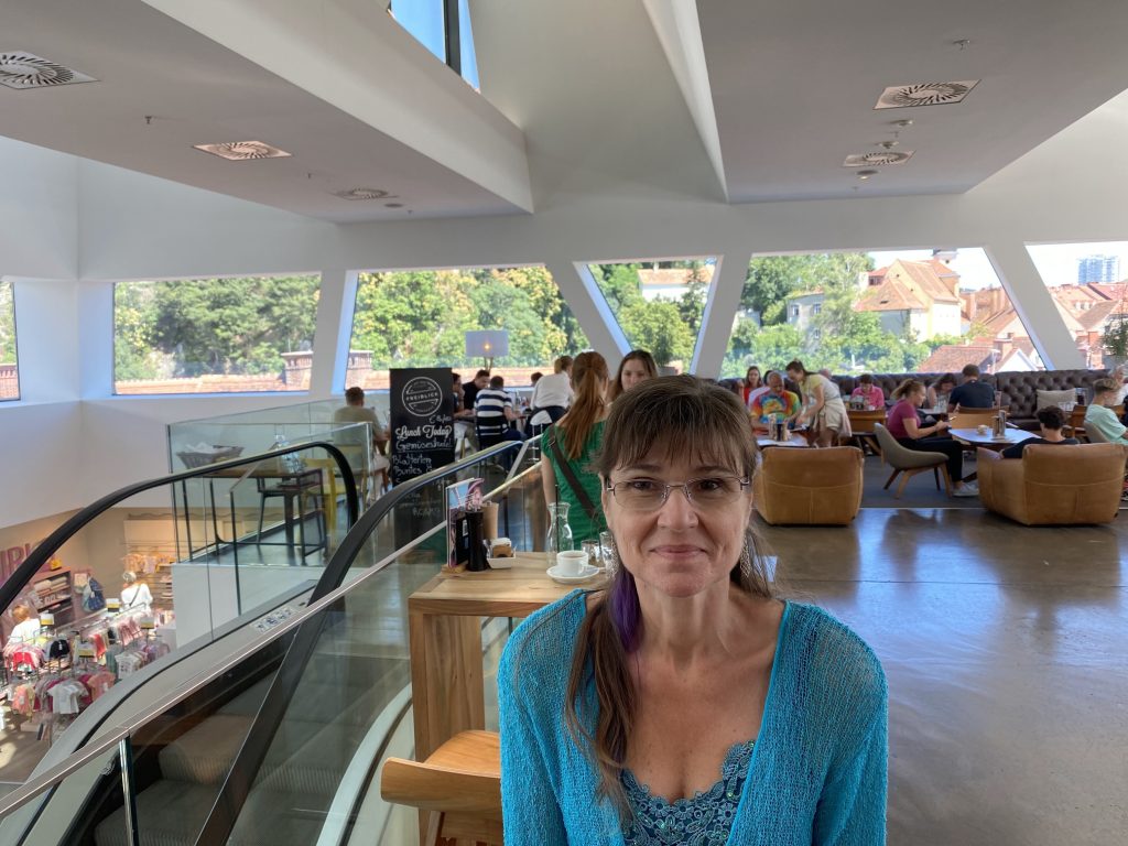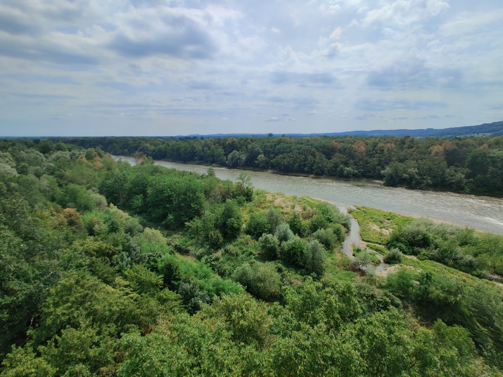 Lothar and I went to the Mur river and tower. The Mur river runs through a lot of places around where we’re staying. The tower has a cool design, and we enjoyed a nice walk, climb, and views!