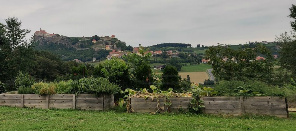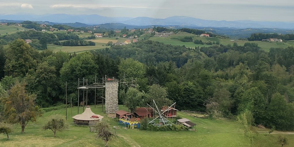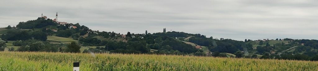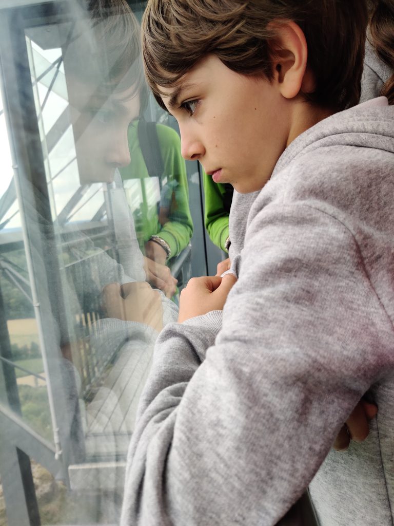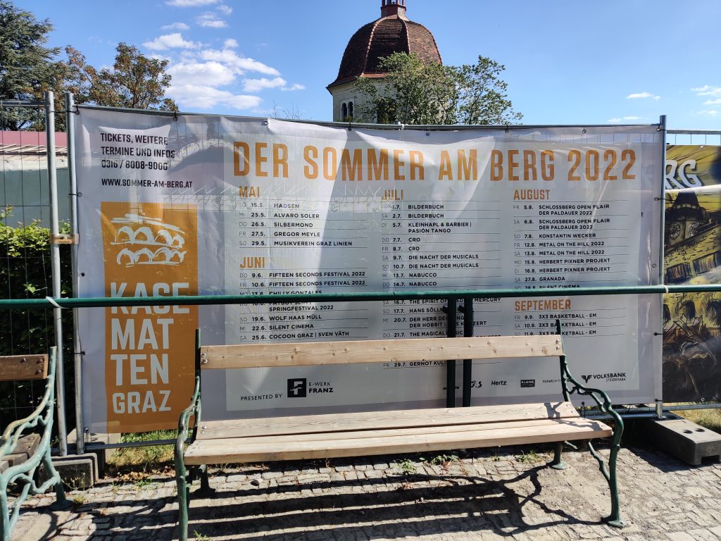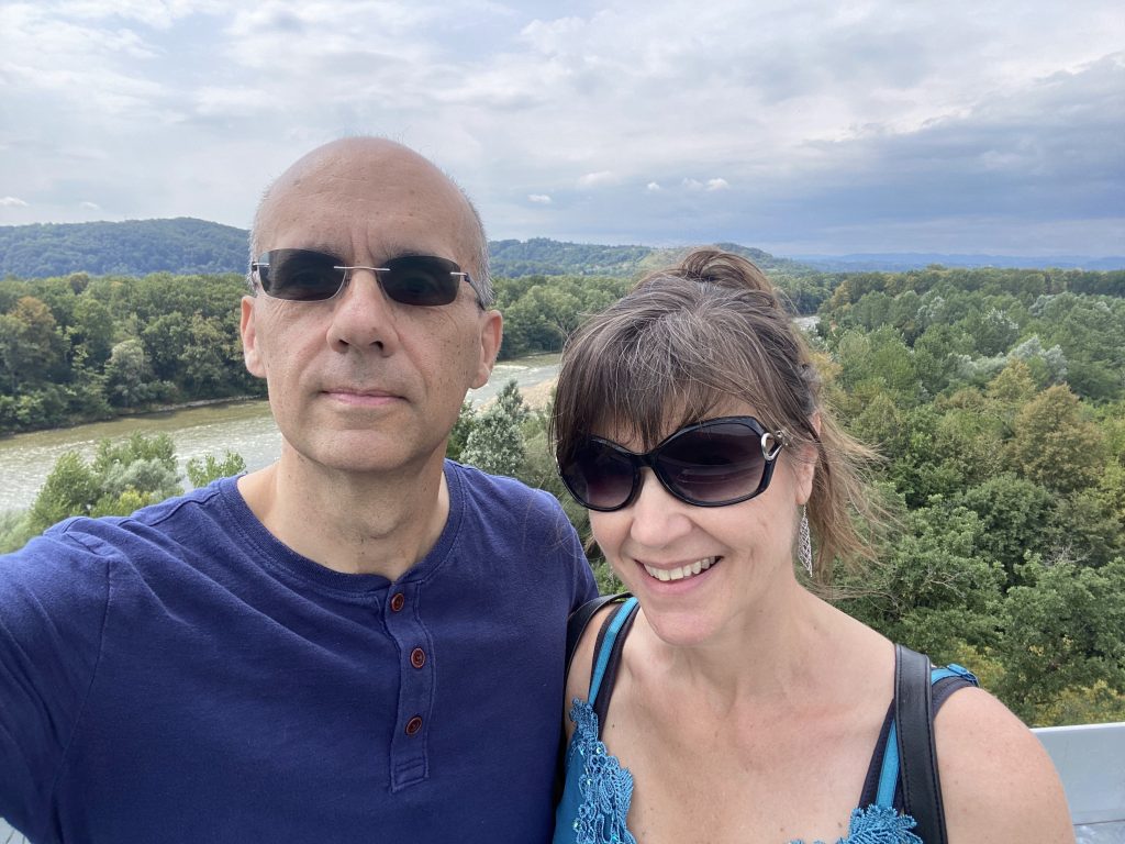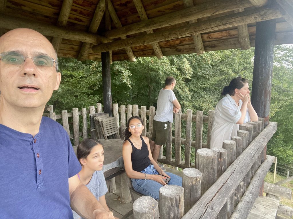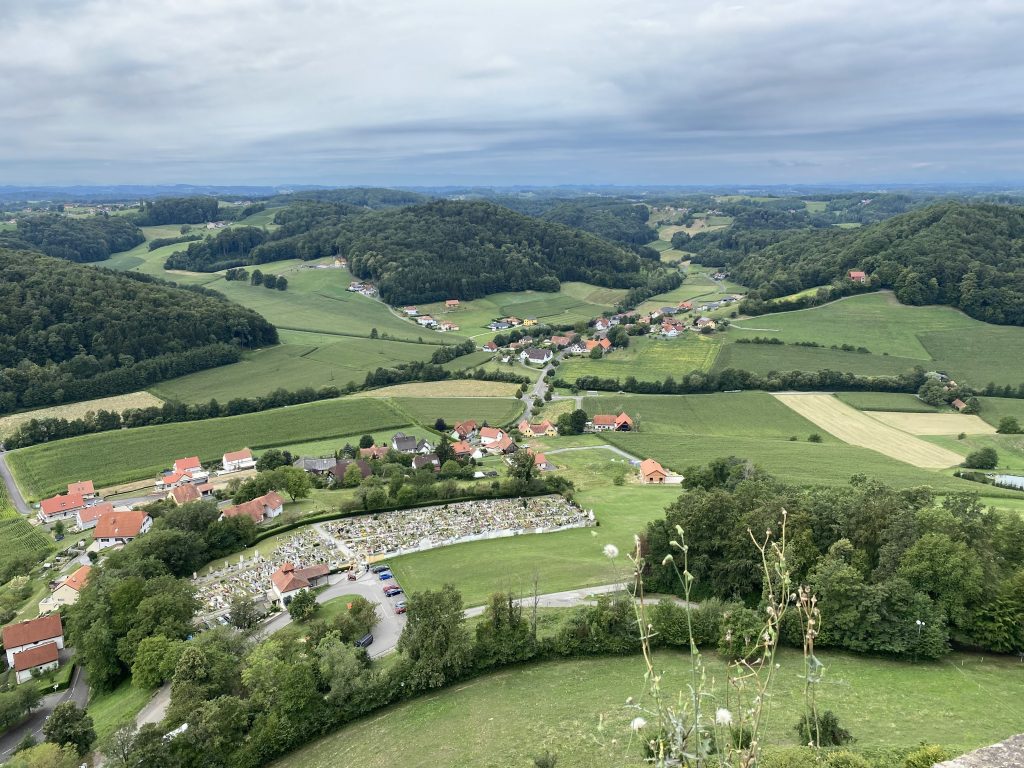 Lothar and I went to the Mur river and tower. The Mur river runs through a lot of places around where we’re staying. The tower has a cool design, and we enjoyed a nice walk, climb, and views!
