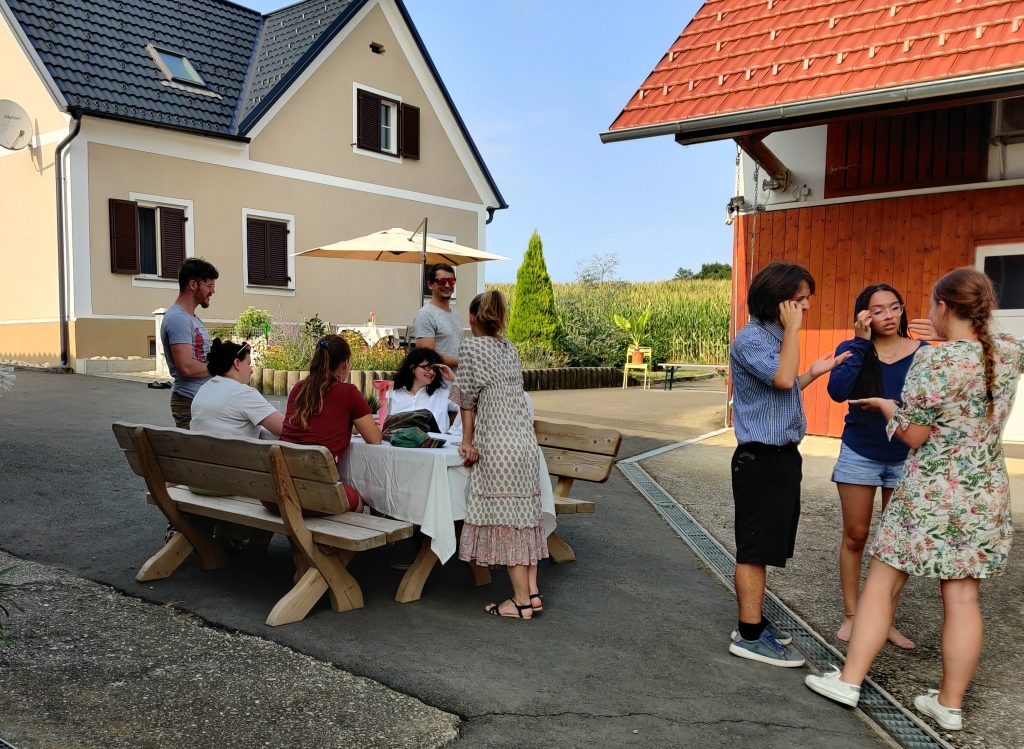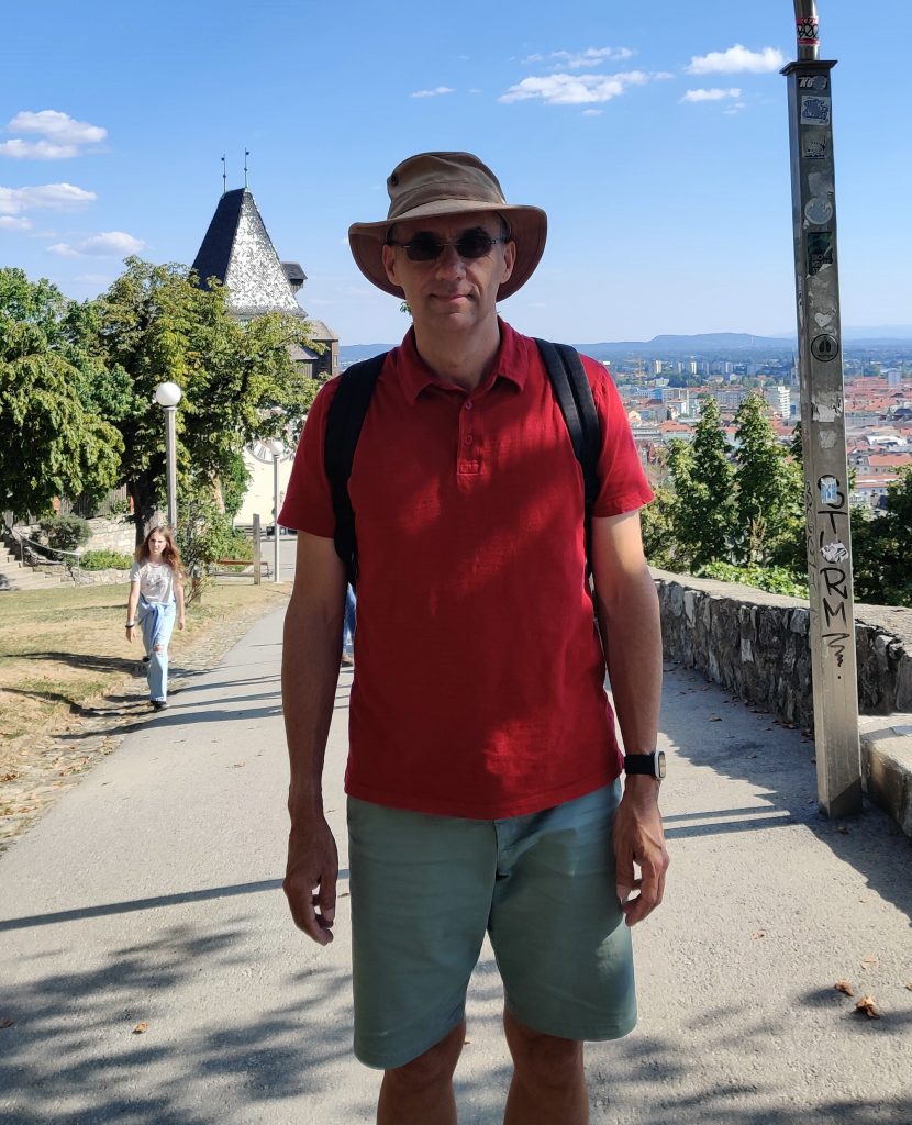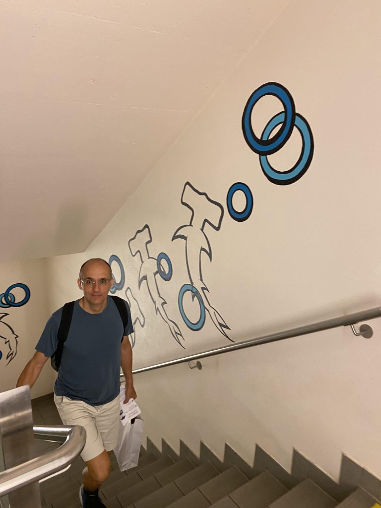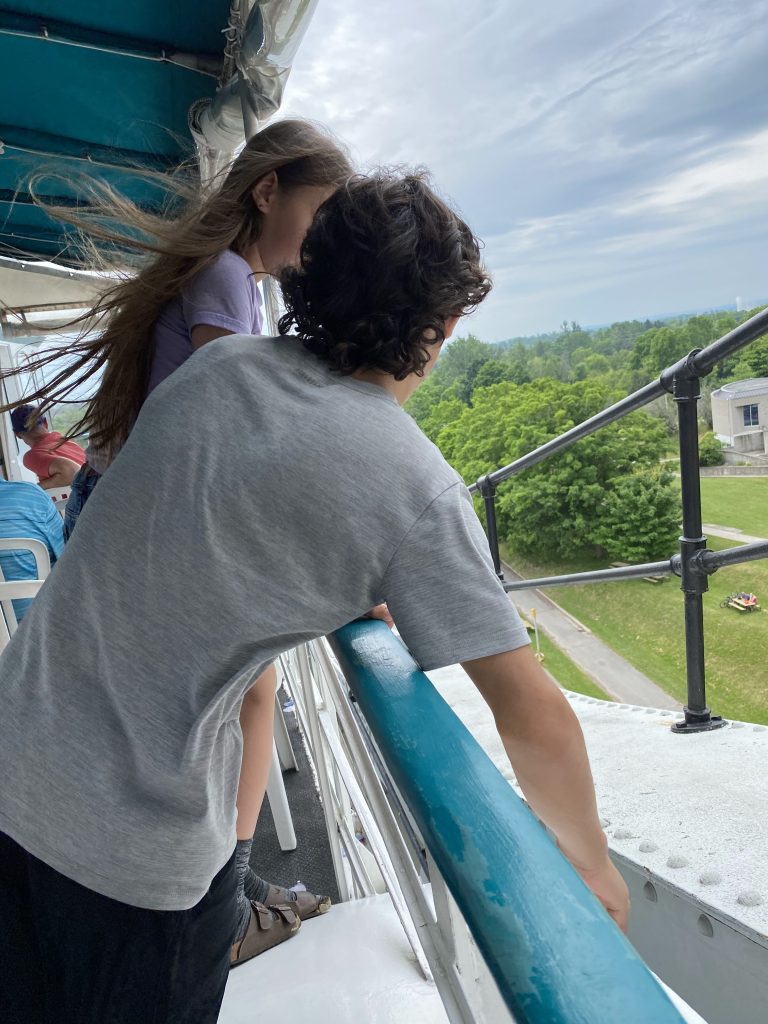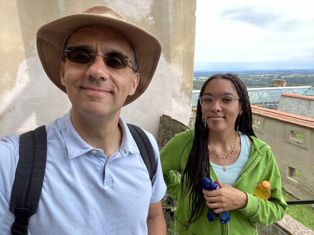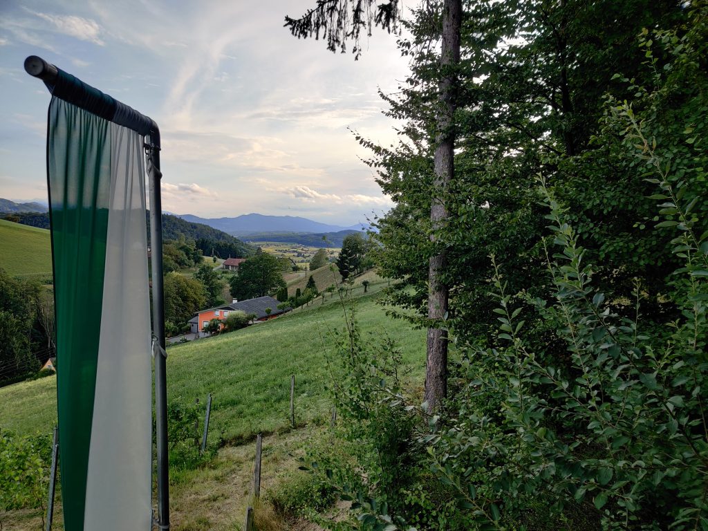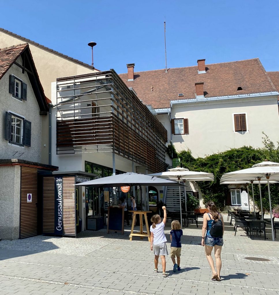 Lothar and I went to the Mur river and tower. The Mur river runs through a lot of places around where we’re staying. The tower has a cool design, and we enjoyed a nice walk, climb, and views!