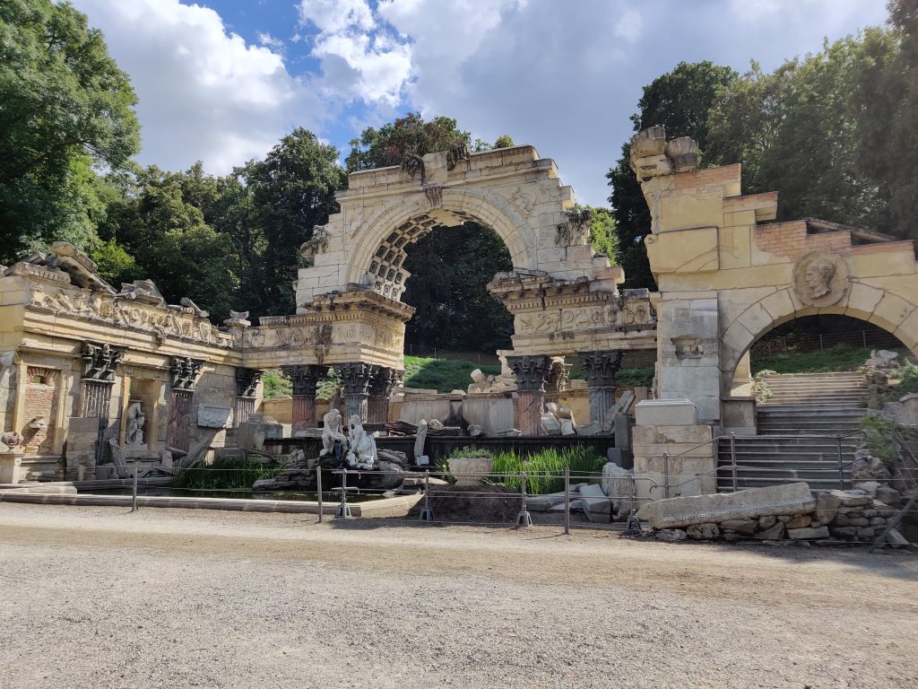 This is the castle gardens. You start in front of the castle, then the gardens, walking paths, ponds and the restaurant are all behind.