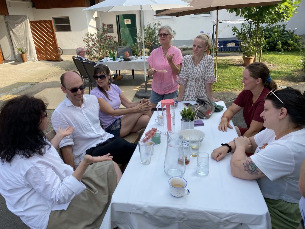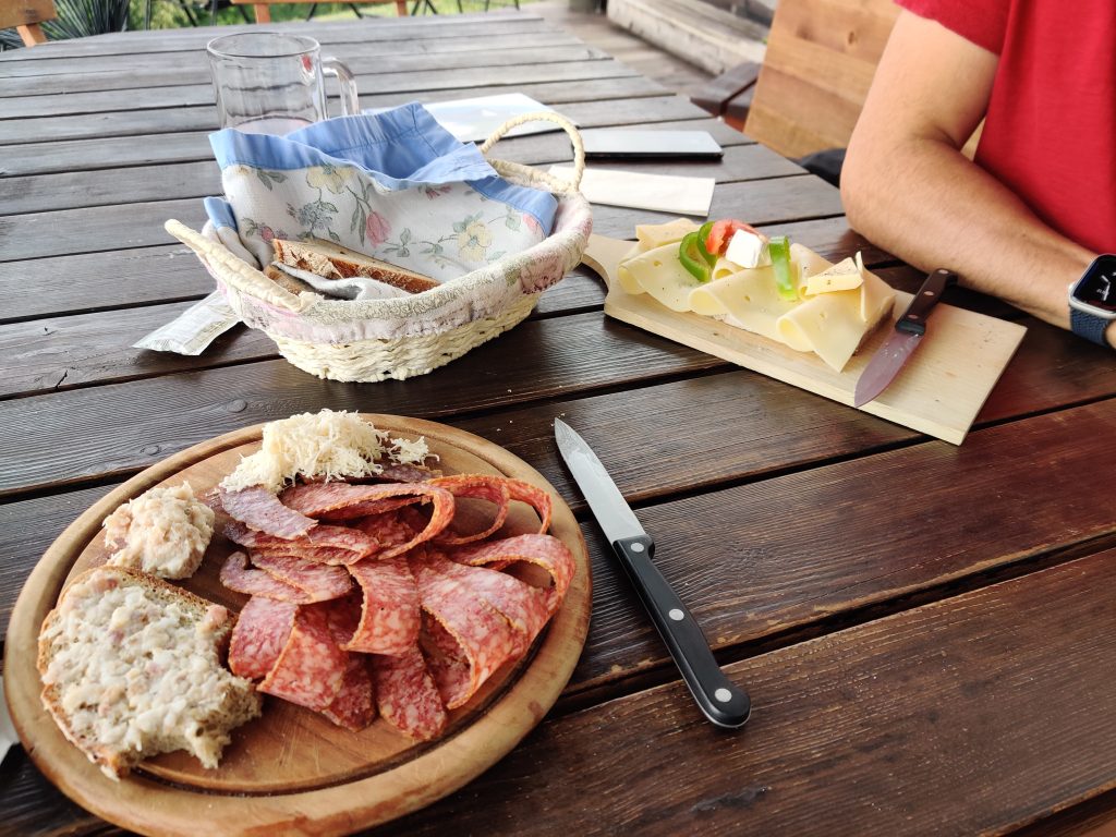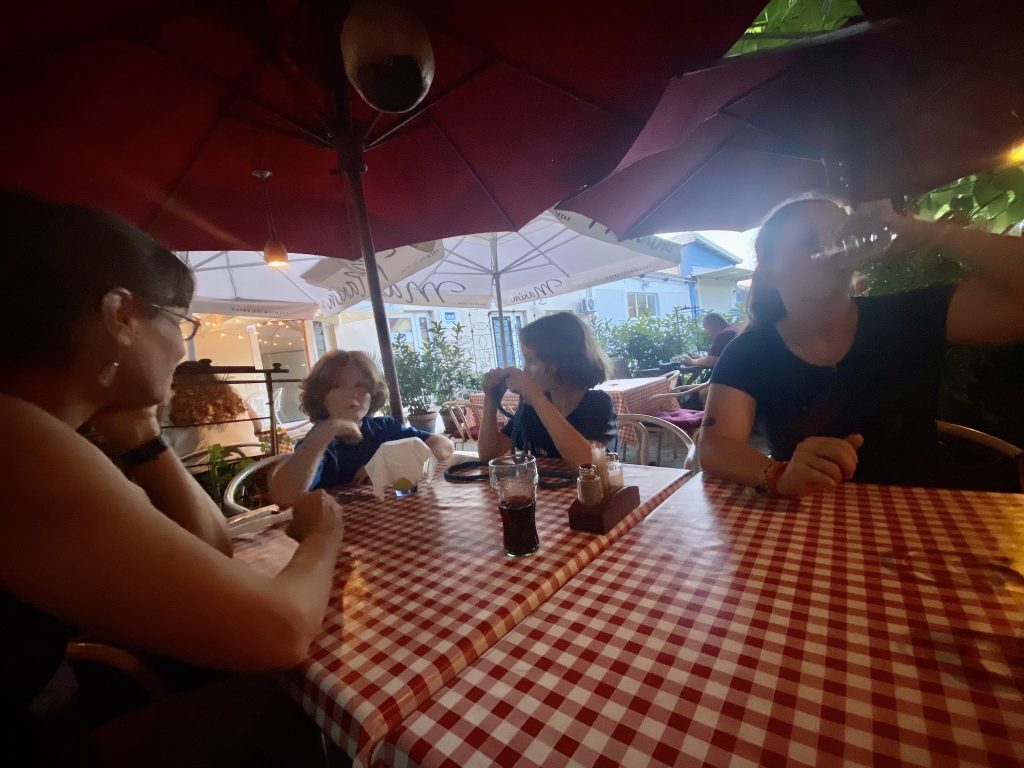 Lothar’s step mom and husband (Anne-Marie and Ian) came over, and we all drove to Slovenia, as the border is really close by. Lothar’s sister Moira and her boys James and William joined us too. I had chevaps (!!) with lots of onions and lepinja bread hot from the oven. It was perfect! The bread was so fresh it was too hot to touch at first!