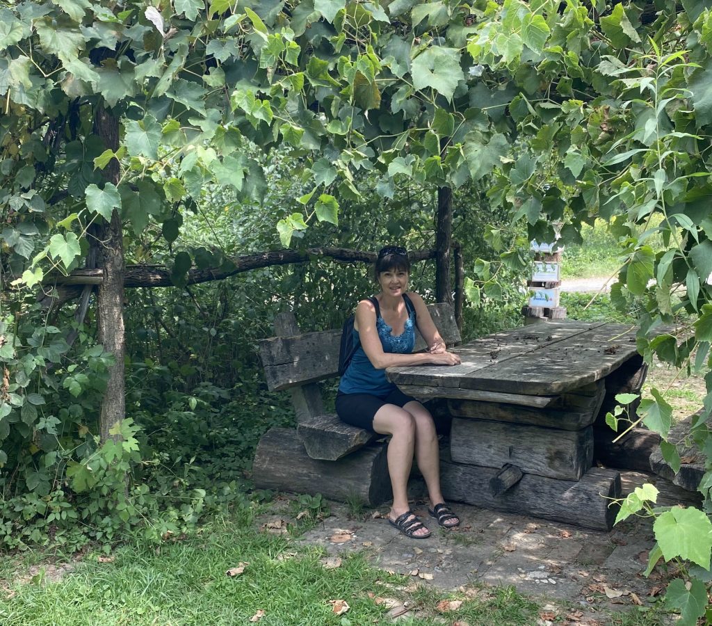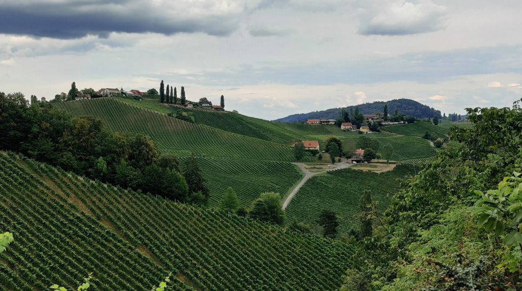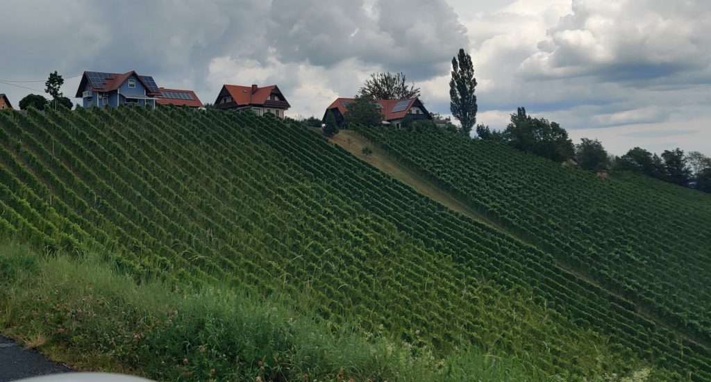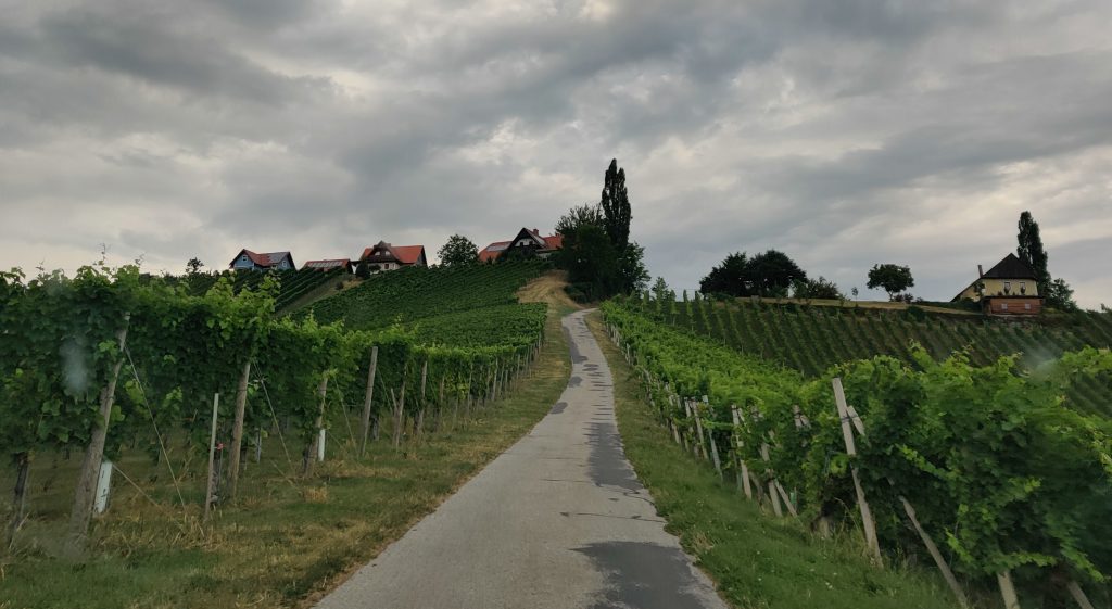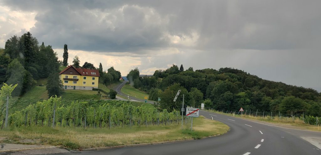 We drove along the winery street. Literally, all the wineries are along this one road. We found a really nice quaint bouchenshank. Many were very modernized, and all glass and tall metal pillars, but the one we found really had a nice vibe and terriffic view. It was raining but it didn’t matter because we had a table outside under the veranda. I had their Moscato white wine, and bread board with the pork fat spread and delicious dried house sausage. Lothar had a cheese and bread board. It was a real highlight!