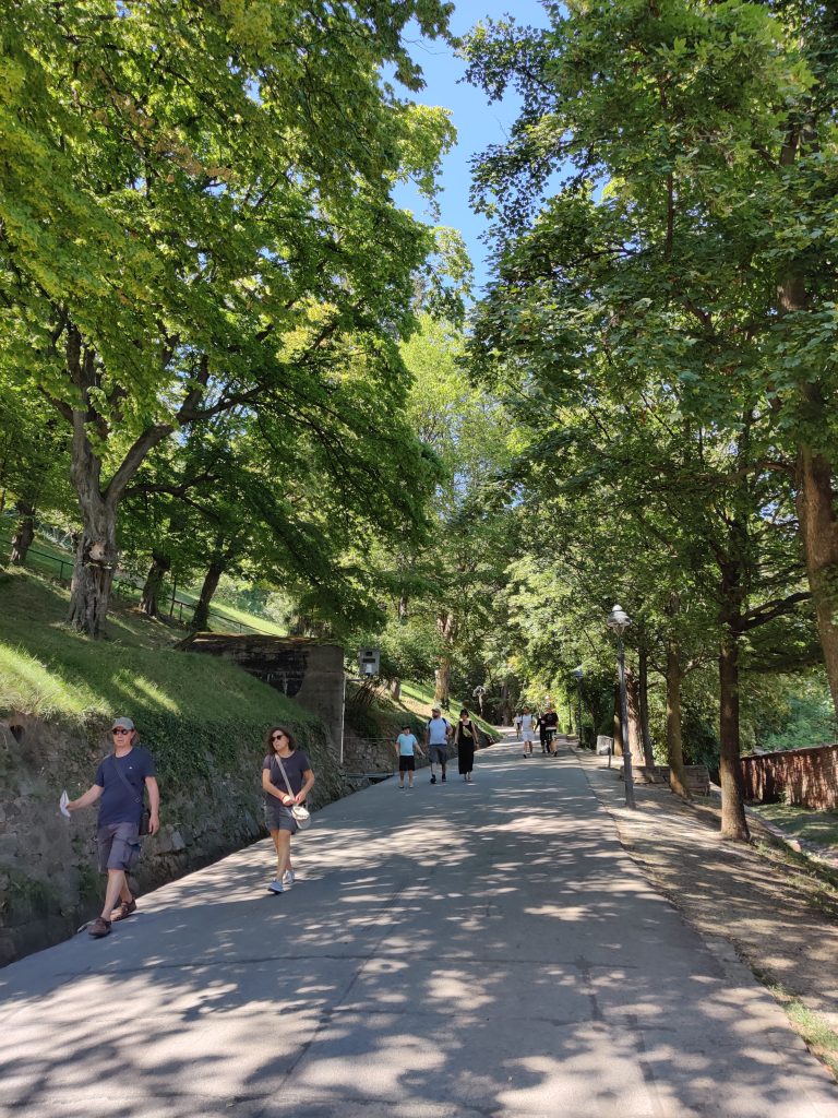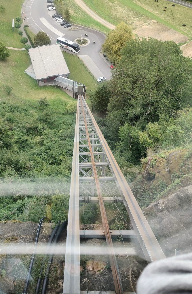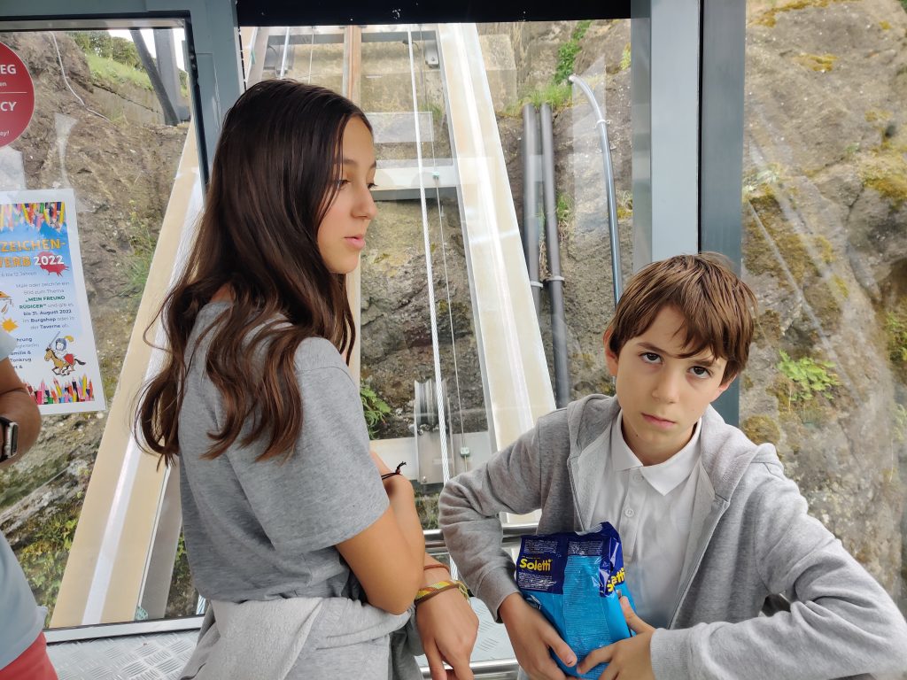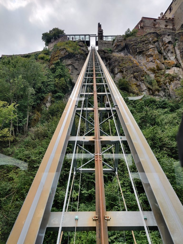 Emil and Elizabeth came with us. We took a sloped elevator up the side of the hill rather than walking all the way up.