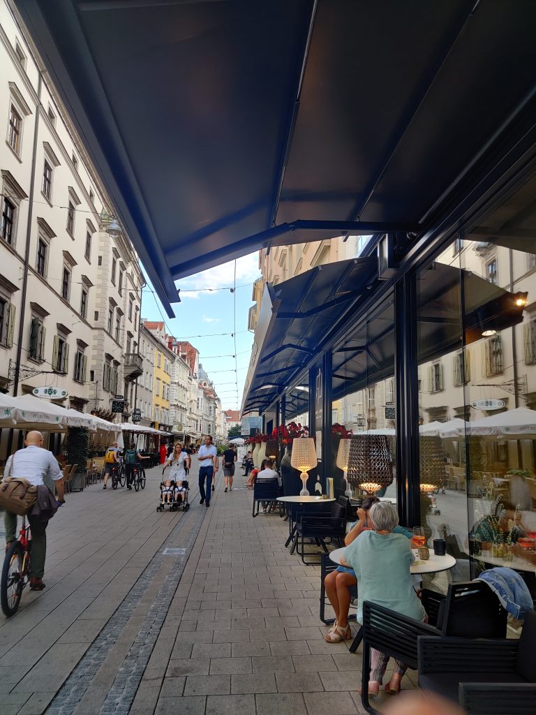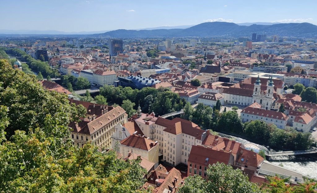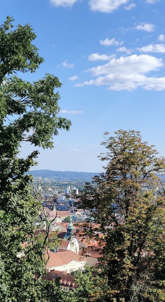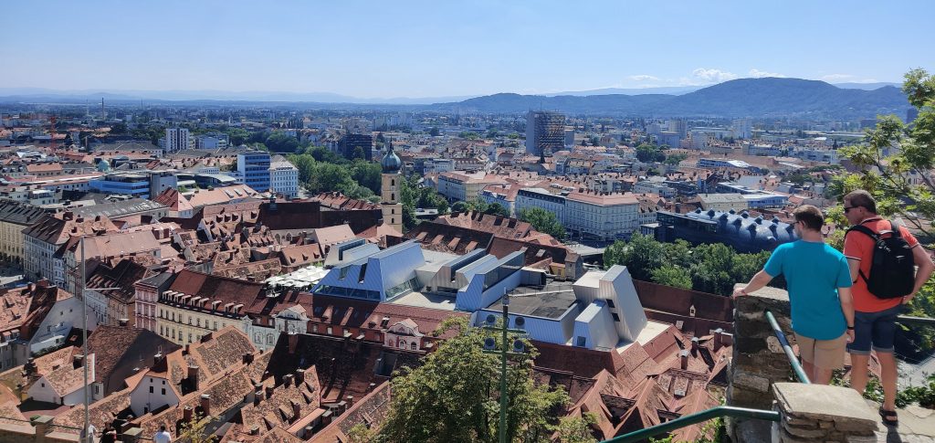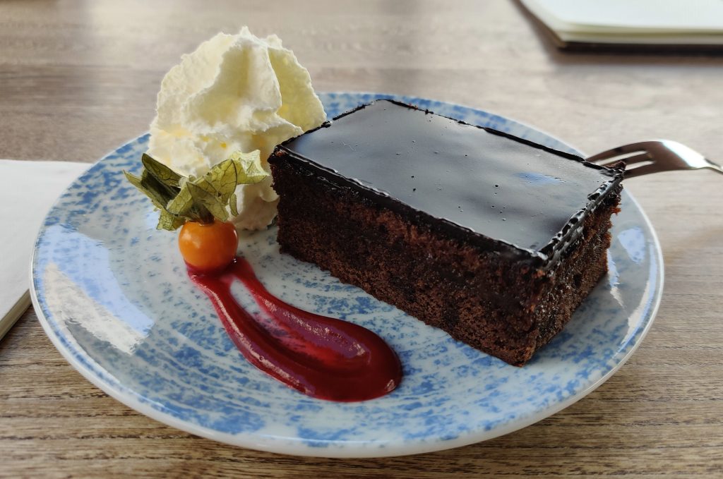 We went up to Graz castle. It’s a nice winding path up to the top with the iconic clock tower. Half way up both of us had to find a toilet quick! LOL Something we ate I guess. At the top, we sat down at the café, and I had a sachretorte – a local must-have.