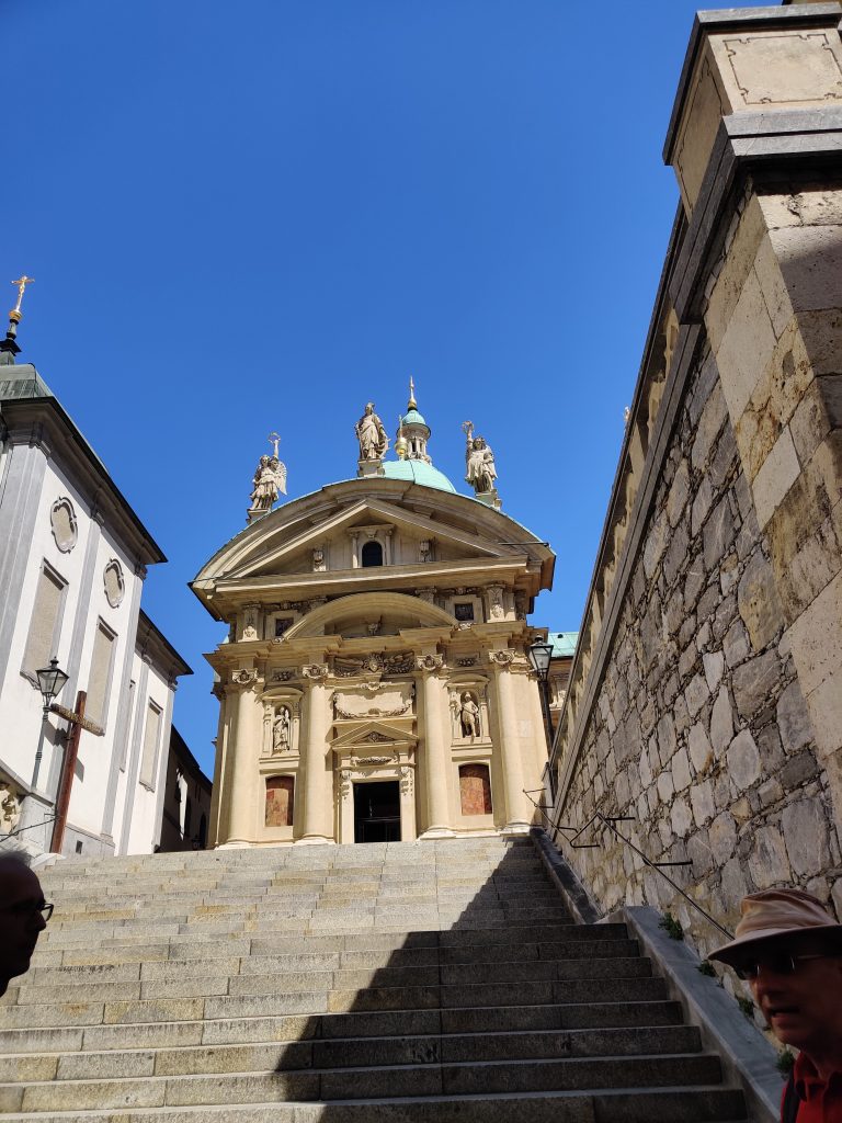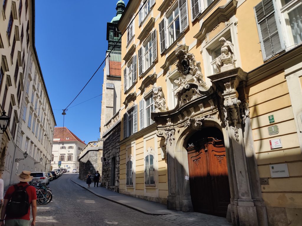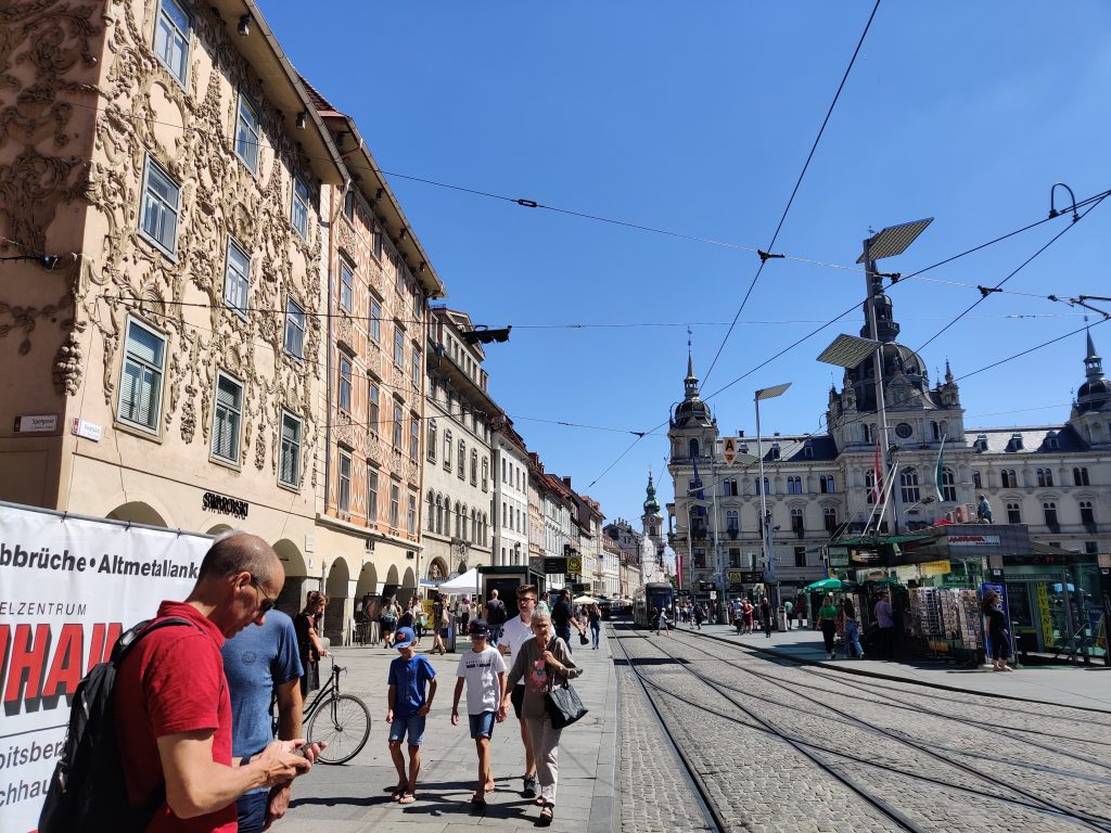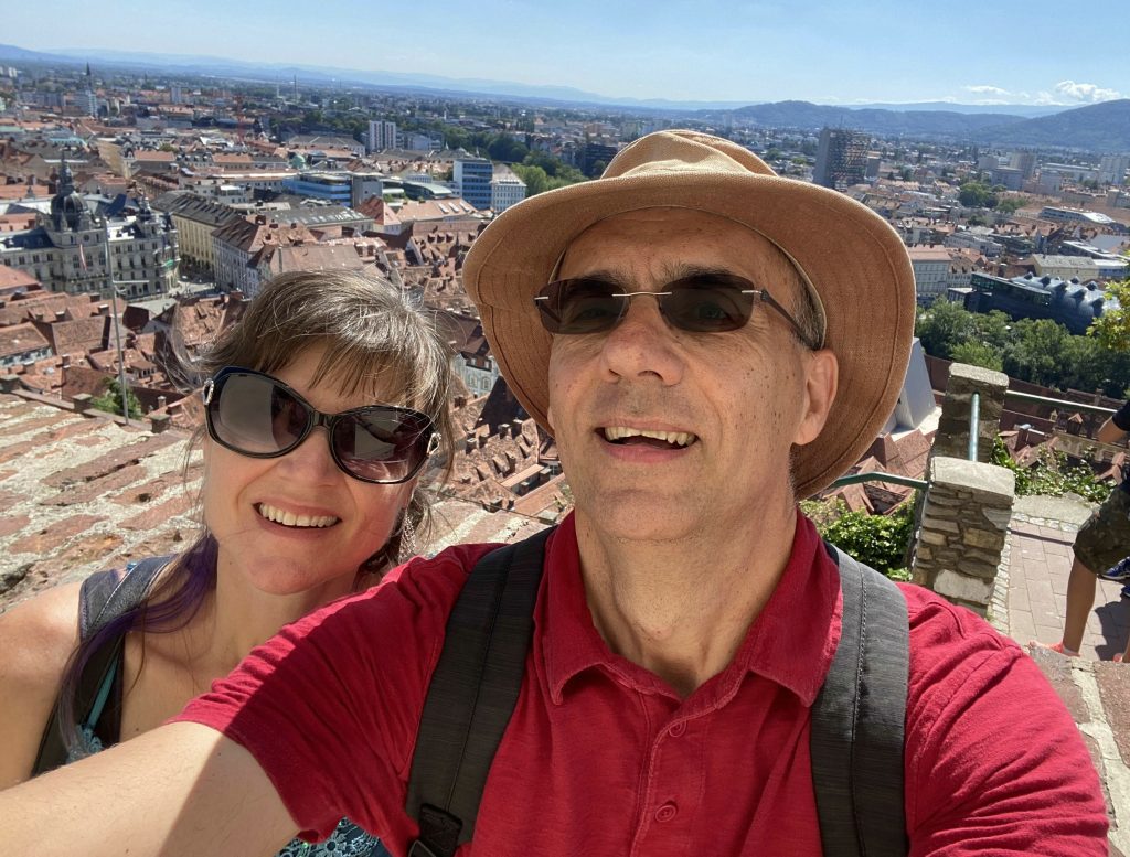 We went up to Graz castle. It’s a nice winding path up to the top with the iconic clock tower. Half way up both of us had to find a toilet quick! LOL Something we ate I guess. At the top, we sat down at the café, and I had a sachretorte – a local must-have.