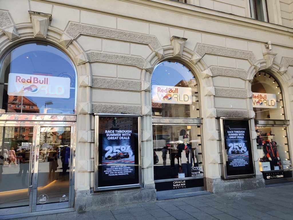 Someone has a Red Bull racing car hung up on the cliff wall!! Austria is their home race after all.