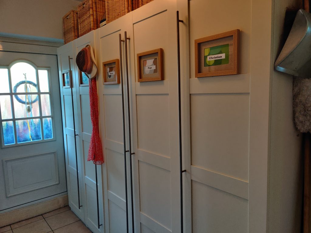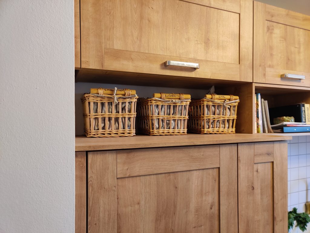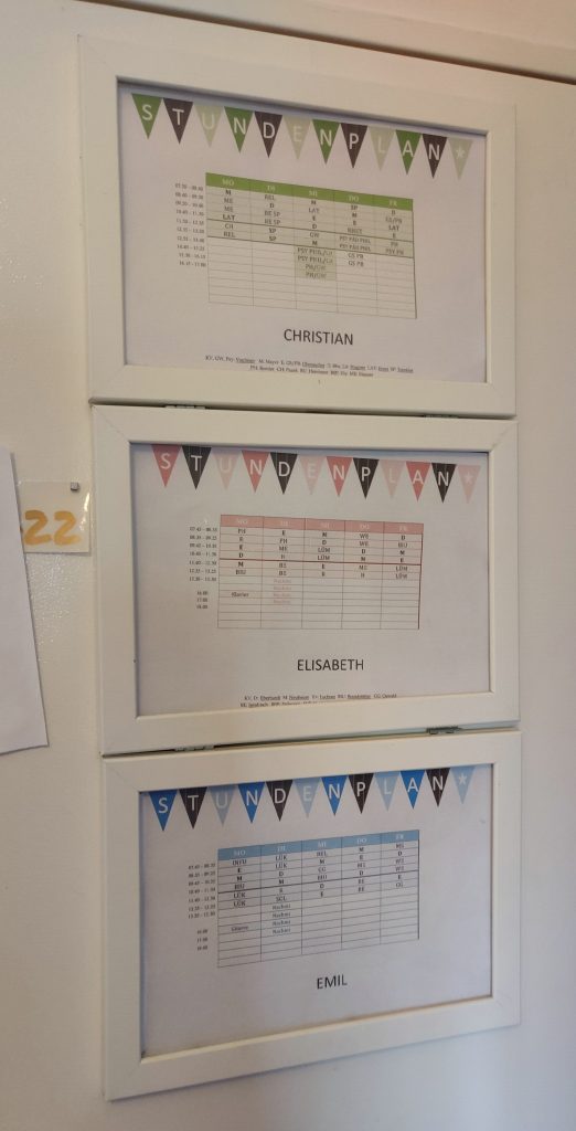 I’ve never seen a family with 3 kids so organized! Everyone has their own mini-closet, storage bins for misc items, and posted schedule. Wow!