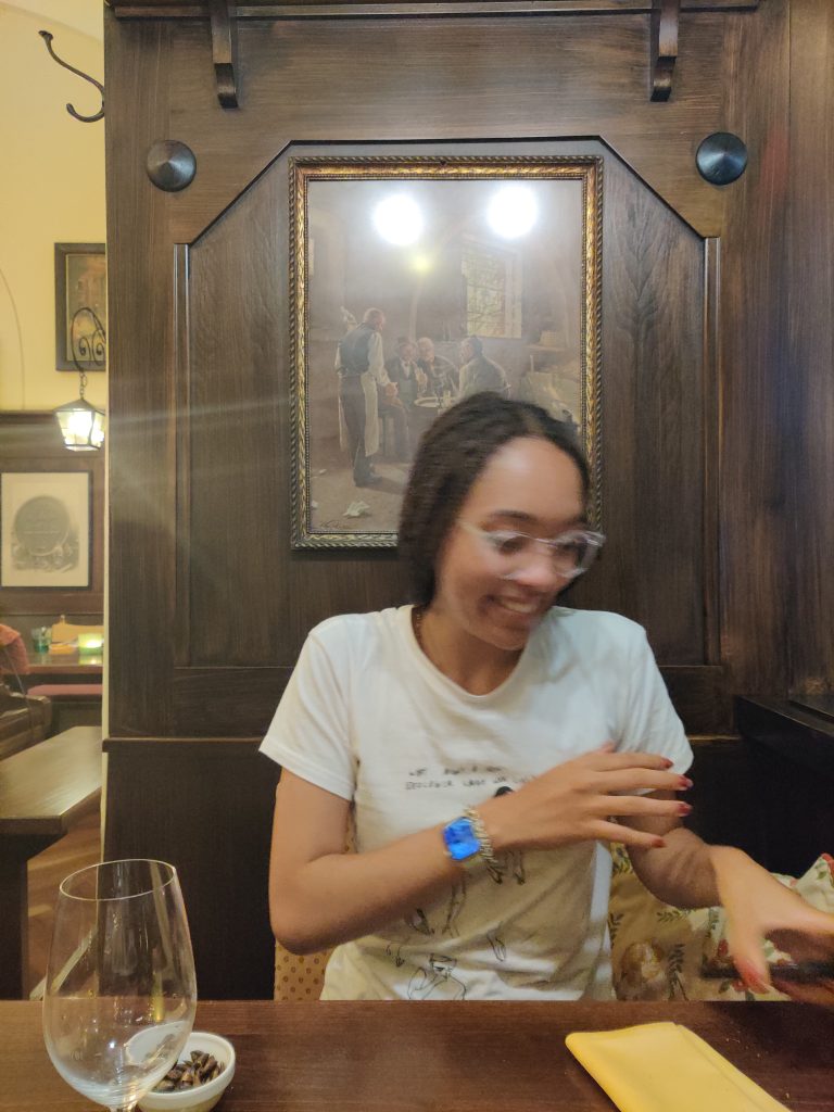 We had such a good time. One of the things we did was an escape room altogether, and we actually succeeded! Here’s a photo of us at the exit, but it’s from a screen so it’s not great. LOL