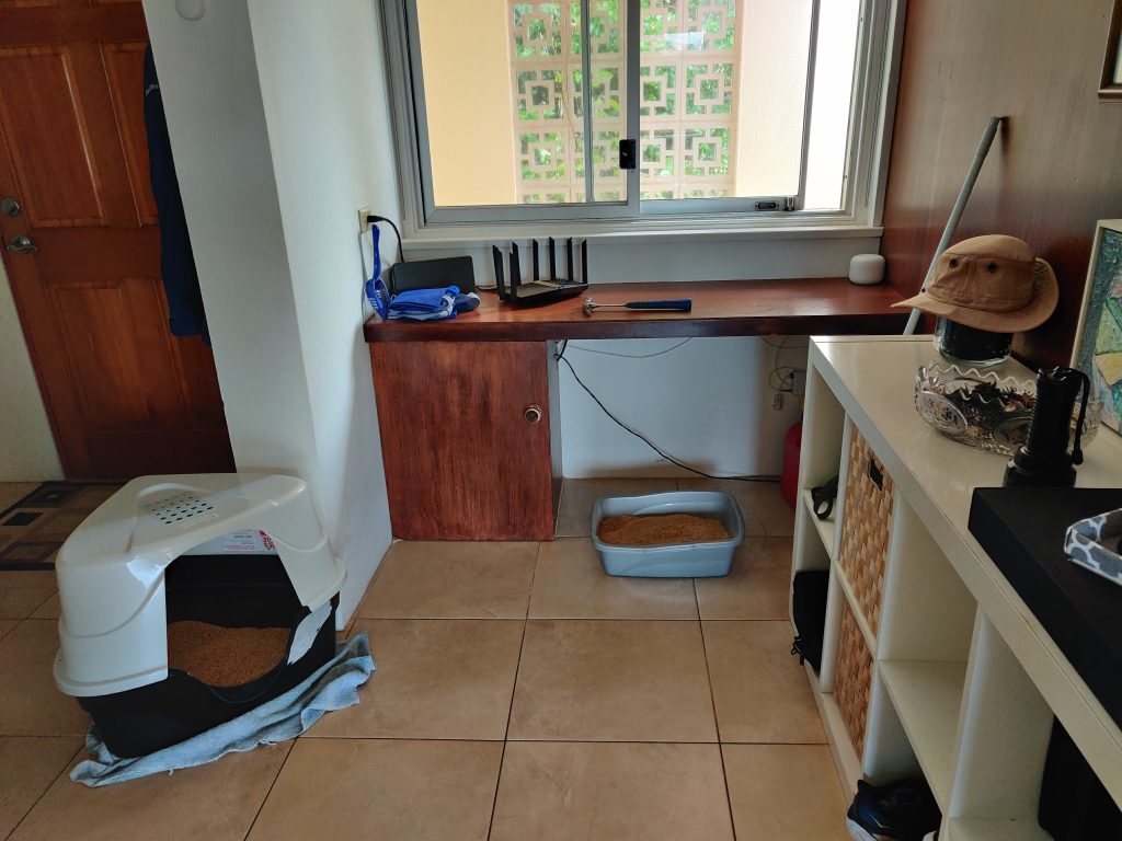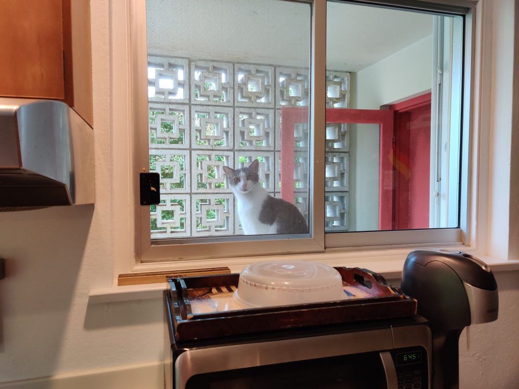 It didn’t take too long to get power back after the storm, and the generator was awesome to have in the meantime, as always. We didn’t get much damage except a lot of leaves coming down from the palm tree, and the plants getting beaten up.