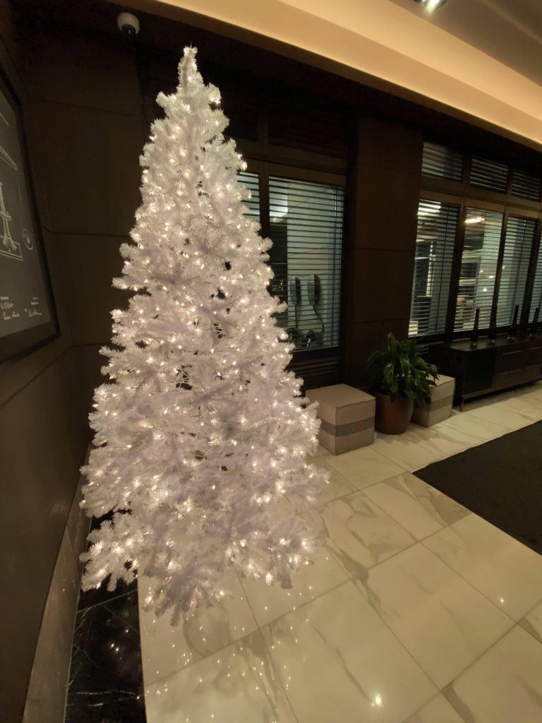We stayed at the Kimpton None Zero Hotel. They had a white Christmas tree in the lobby, even though it was still October.