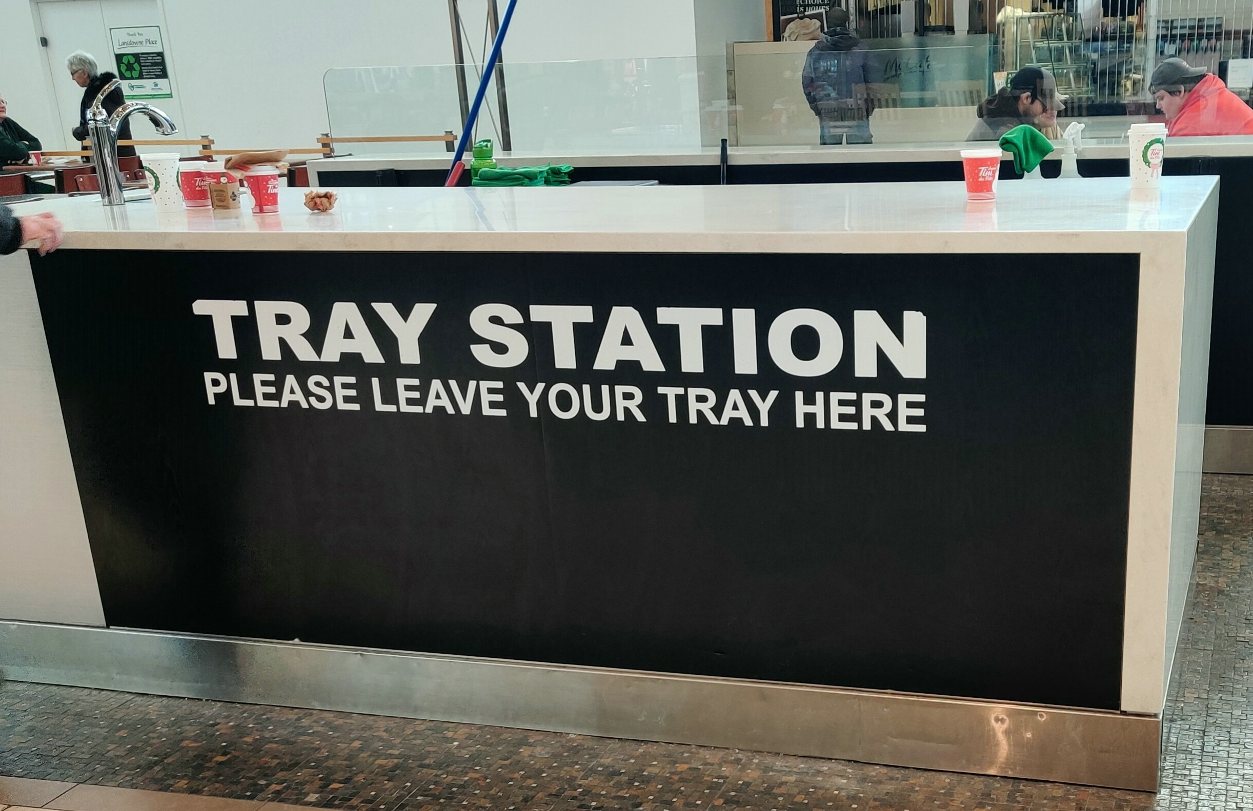 I also made my usual stop at my sister’s chiropractor, who always provides great advice, whether it’s about my hip, shoulder, or just general muscle activation. At the mall, they have a tray station where you can leave your tray with all the random leftovers from your lunch, and somebody comes along to sort everything out, separating plastic lids from cardboard containers, etc. Without that, people often don’t know what to do and end up putting everything in general waste.