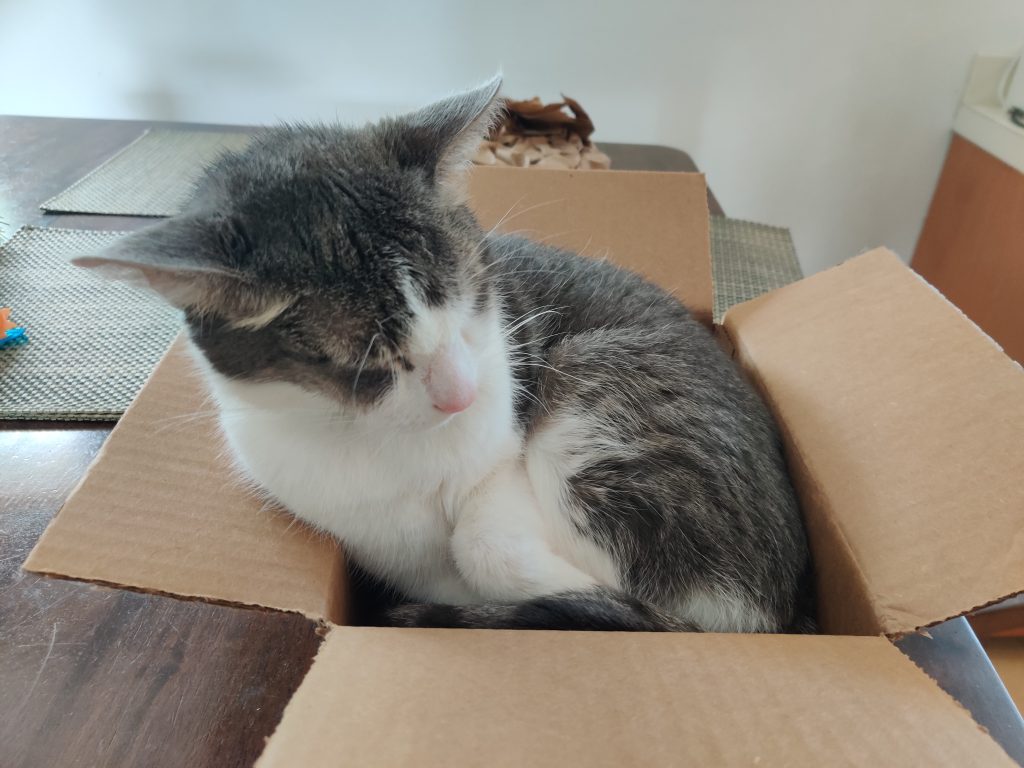 Lance with Nosey. Although not a fast friendship, Lance and Nosey got along nicely. Here’s a cute moment trying to see who can be the one in the box!