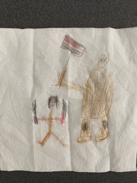 When we weren’t sightseeing, we played lots of VR with the kids, having brought our Quest 2 headsets with us for just that. We showed them Zenith. Clara liked the essence mage (which I play) and Phillip liked the blade master (which Lothar plays), so it worked out perfectly. Phillip even drew a picture of himself, playing the blade master and fighting a large enemy.