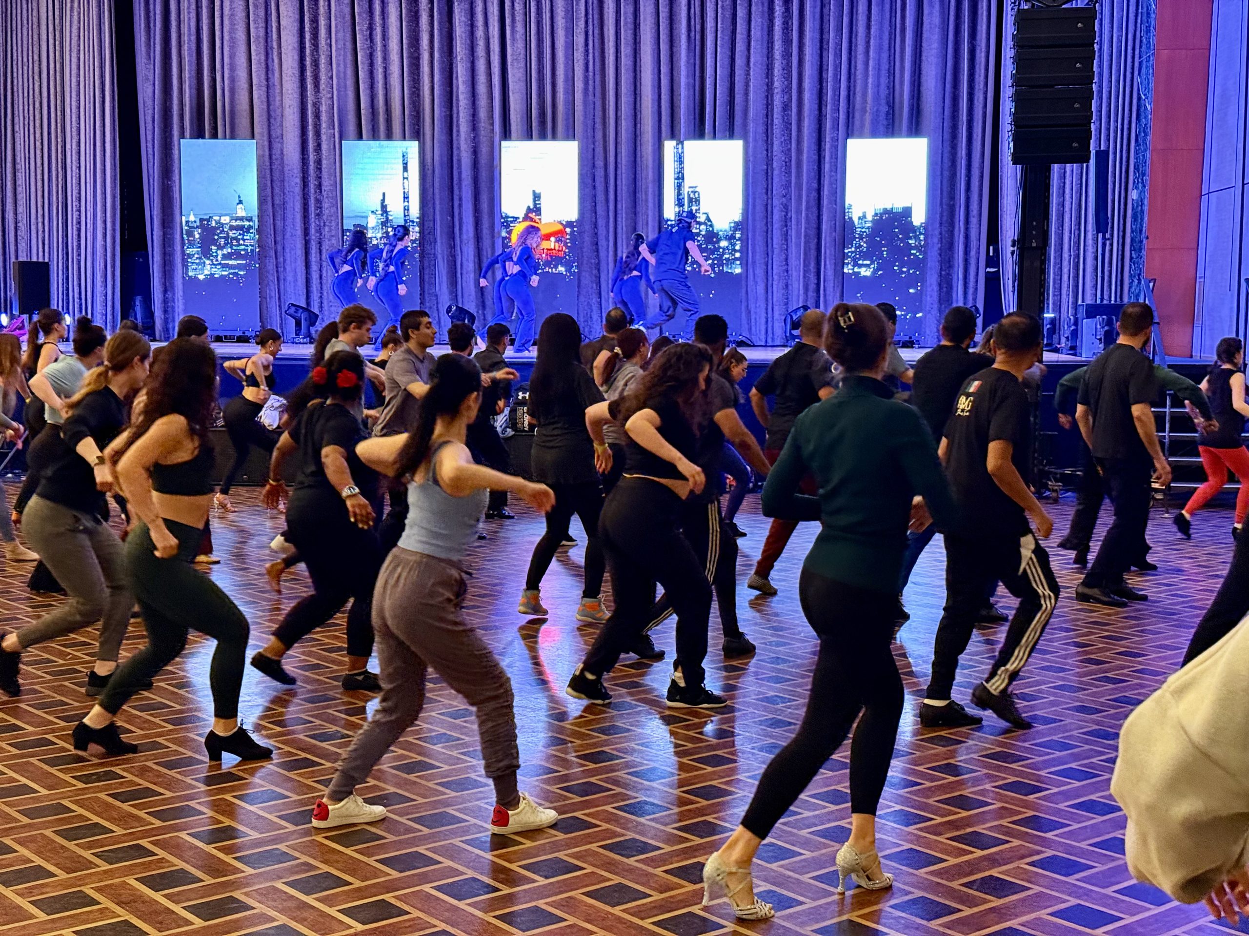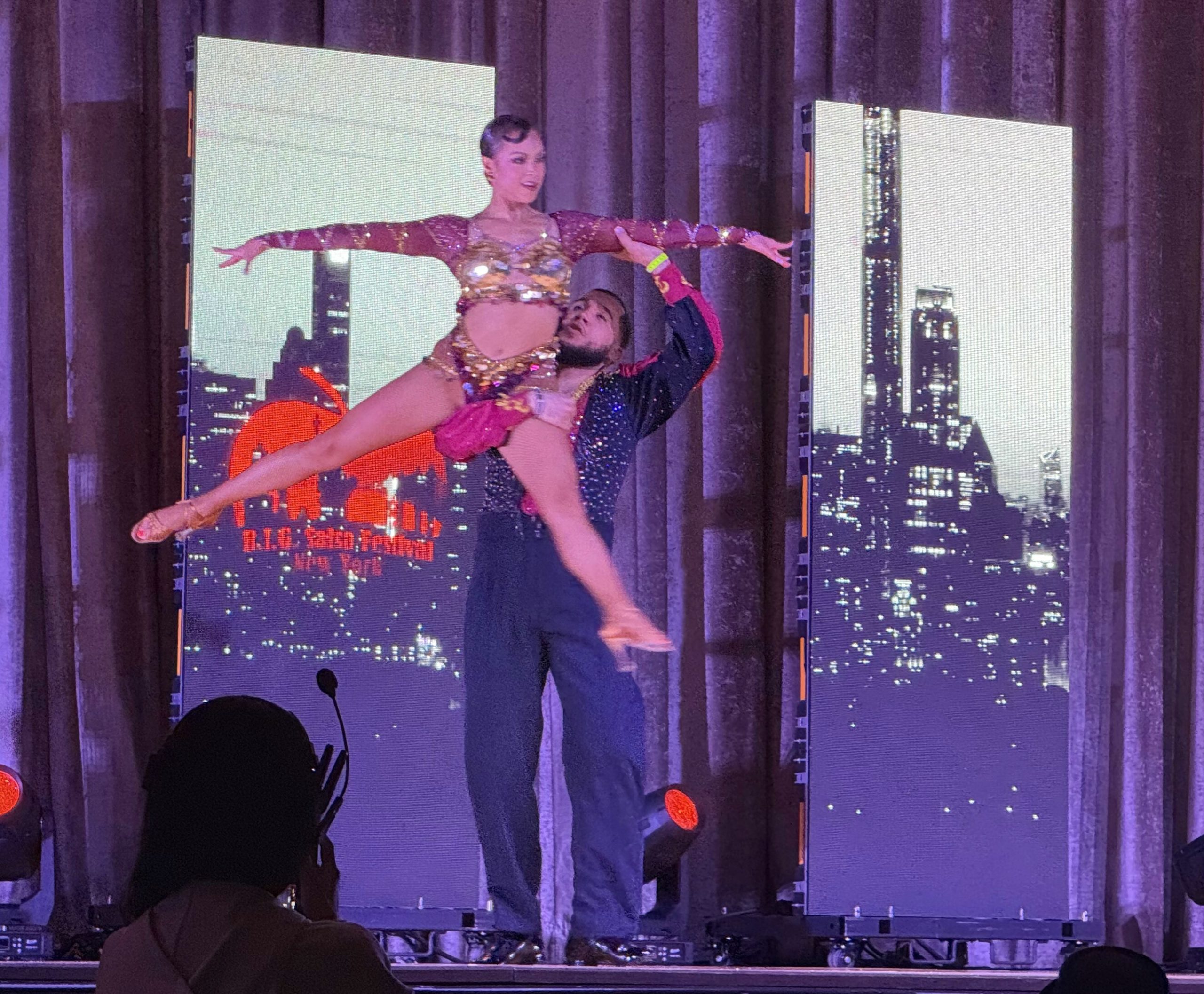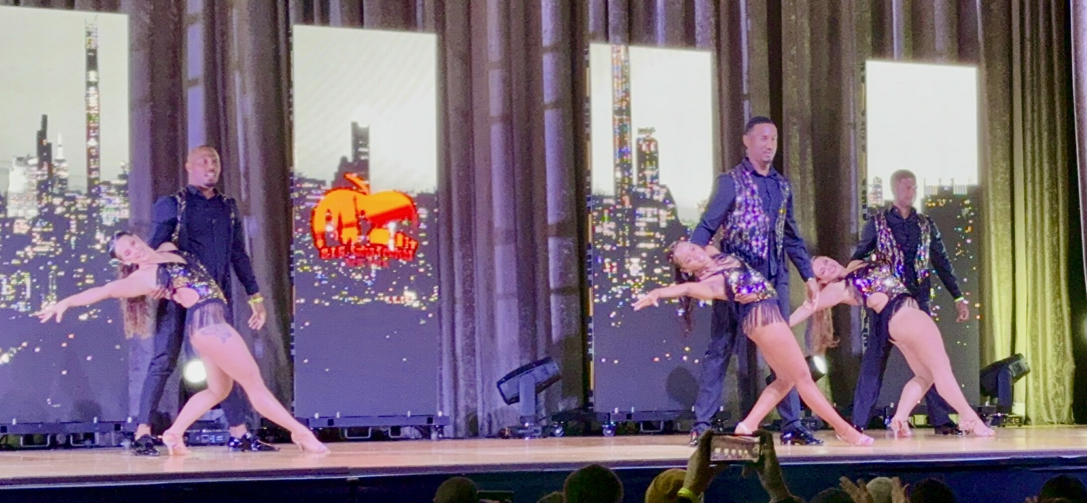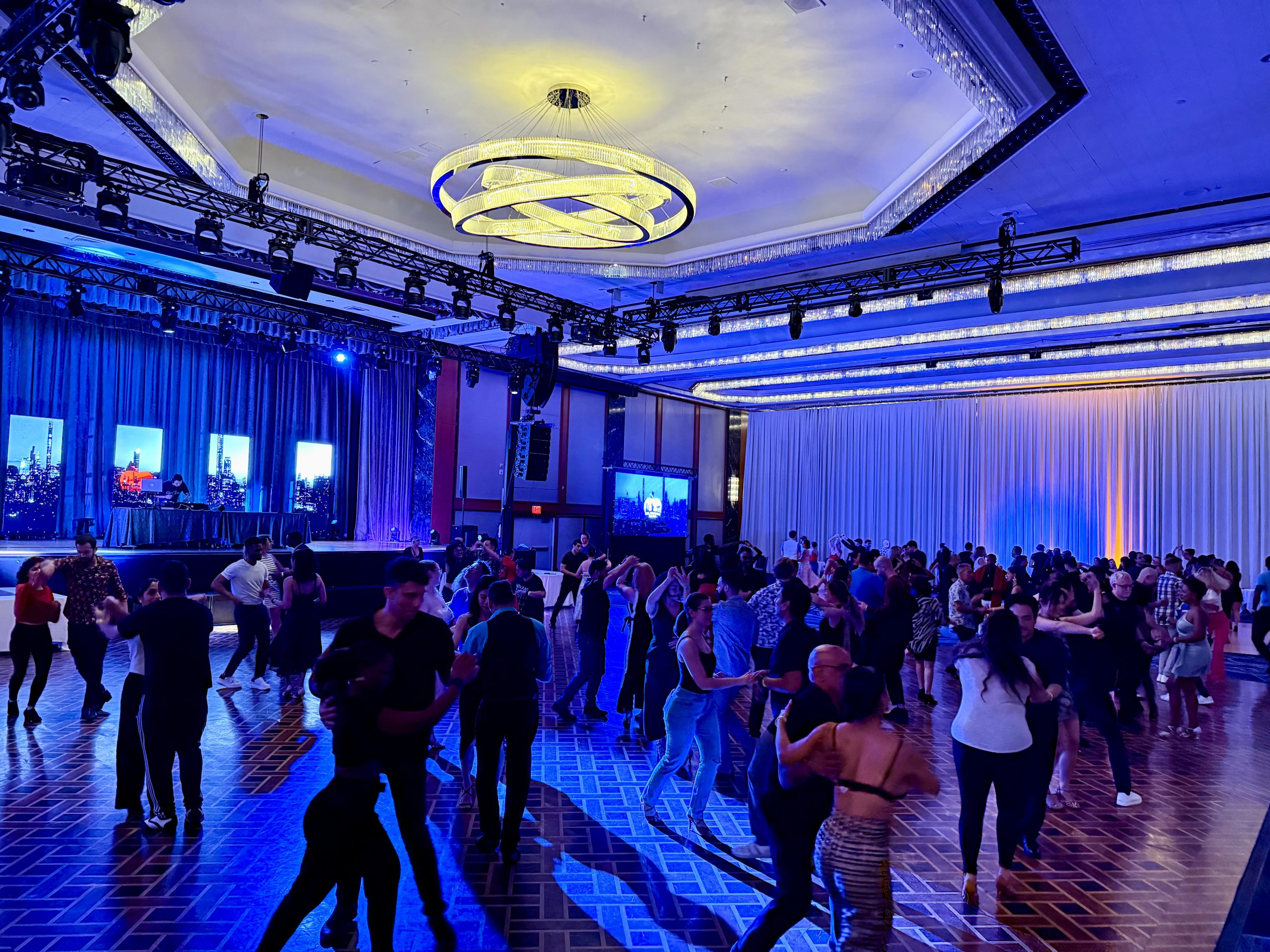 Then the BIG New York Salsa Festival began. We attended 1–2 workshops on each of the three days. What we didn’t realize is that we had stumbled into the advanced room. We were so lost! LOL. It’s a miracle this photo actually captures me doing something like the right move at the right time. But our other workshops were great. We kept up, got lots of tips and help, and have two nice new sequences to add to our dancing! Then each night—shows, shows, shows! There were probably over 50 performances! And then, of course, social dancing afterward. Except “afterward” was like 12:45 a.m.! We stayed a little while on Friday, skipped Saturday, and stayed longer on the final night.