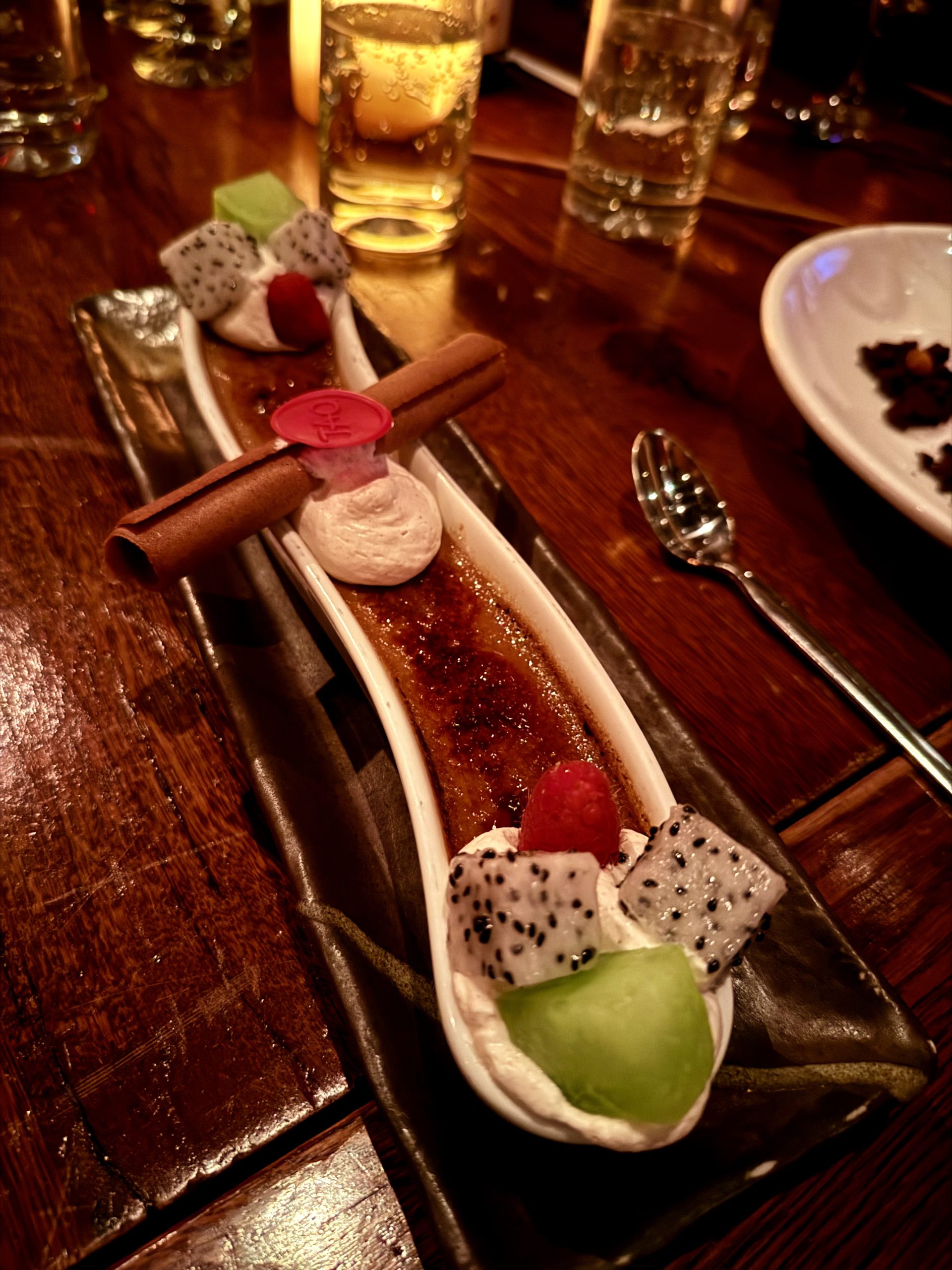 We had an amazing dinner with our Bermuda Salsa friends at Tao Downtown. It’s a restaurant, it’s a club, it’s an experience! And lovely presentations of all the food, including this carrot cake—all parts fully edible!